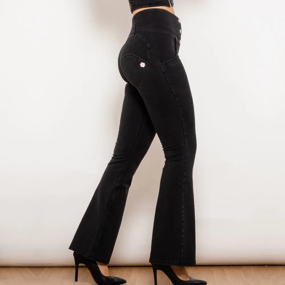 Shascullfites Melody Black Flared Lift Jeggings Button Up Flare Jeans Shaping B