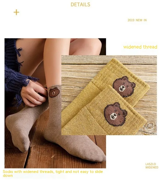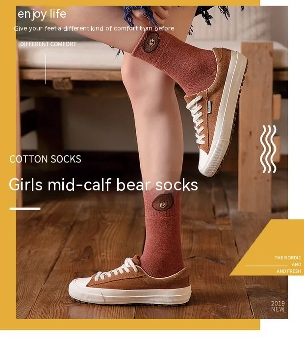 Bear Socks Women's Cute Mid-calf Length Cotton Socks