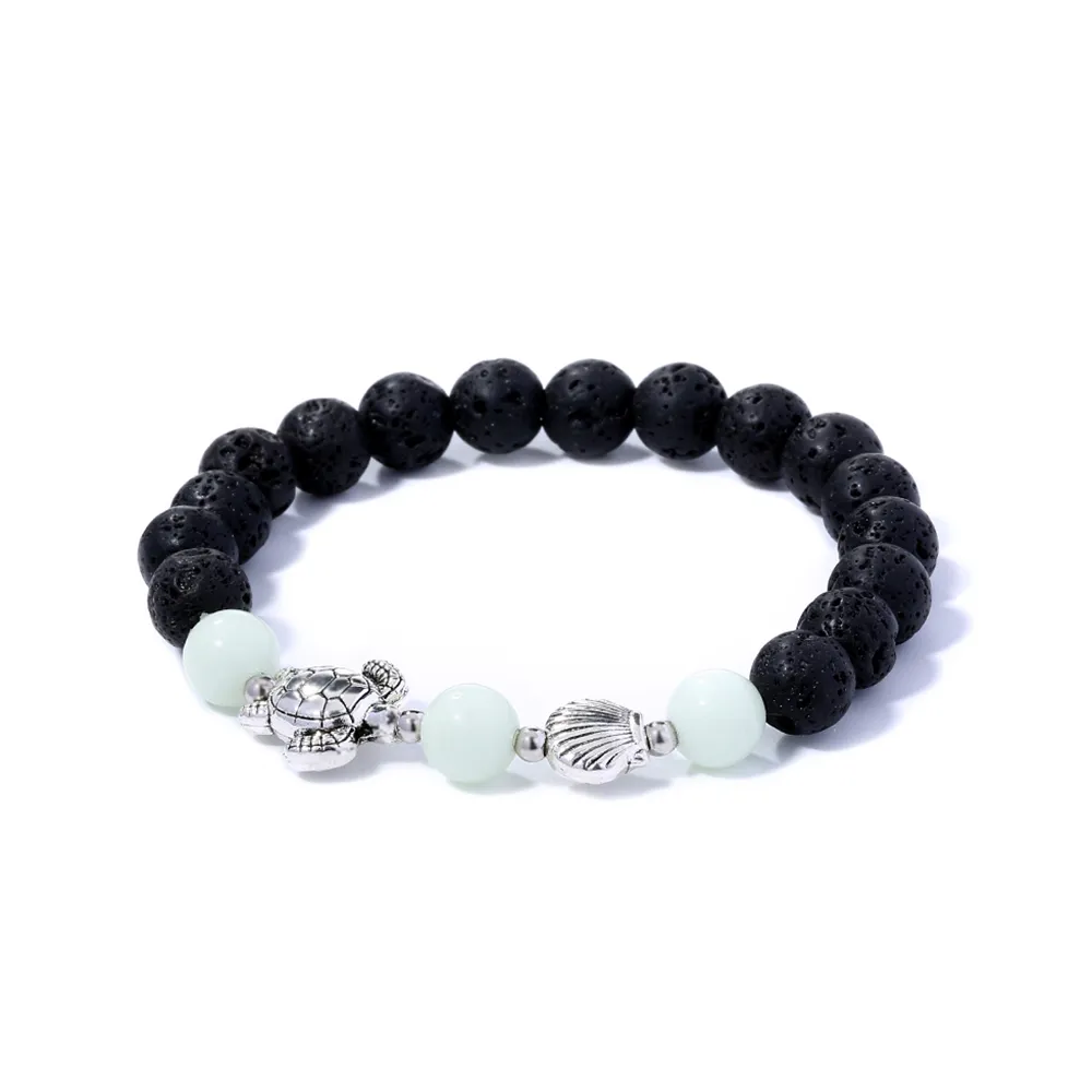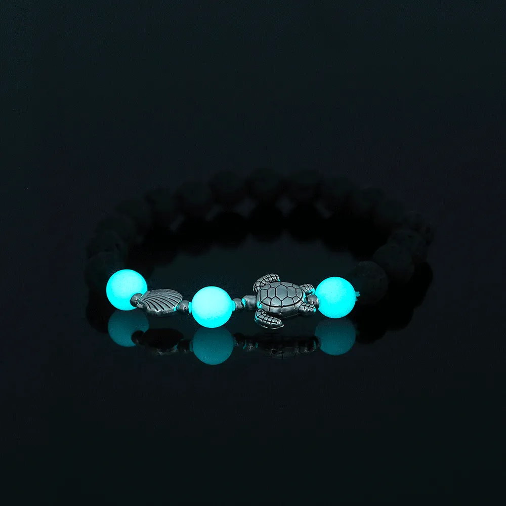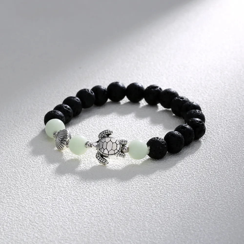 Black Volcanic Stone Blue Luminous Beads Turtle Bracelet