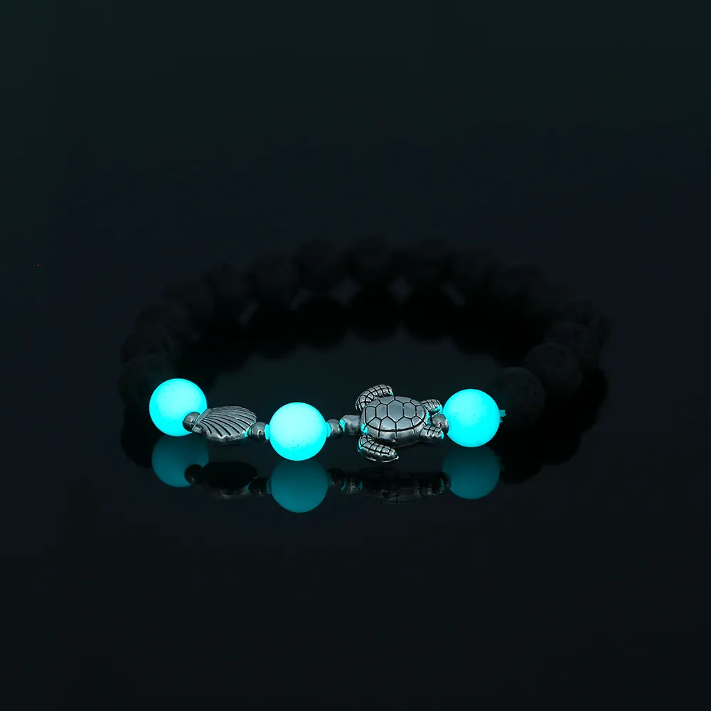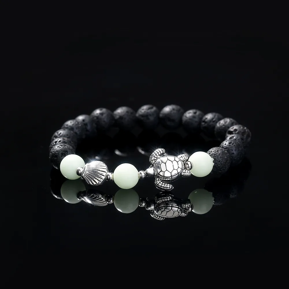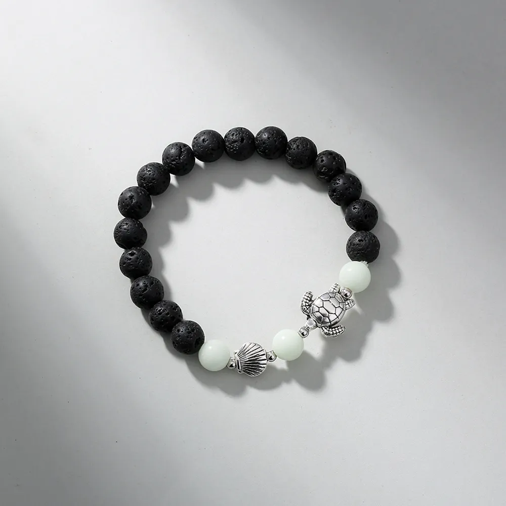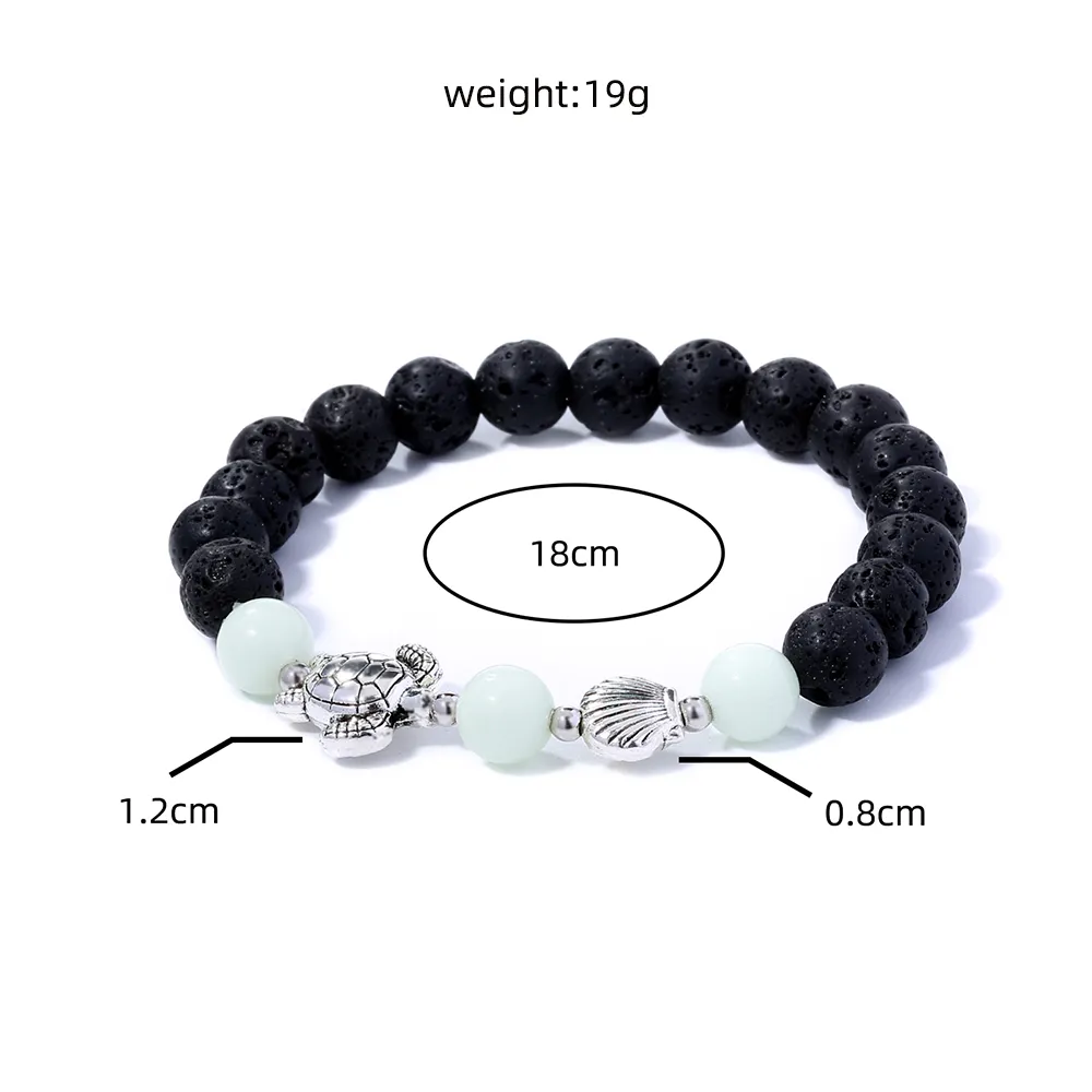 Black Volcanic Stone Blue Luminous Beads Turtle Bracelet