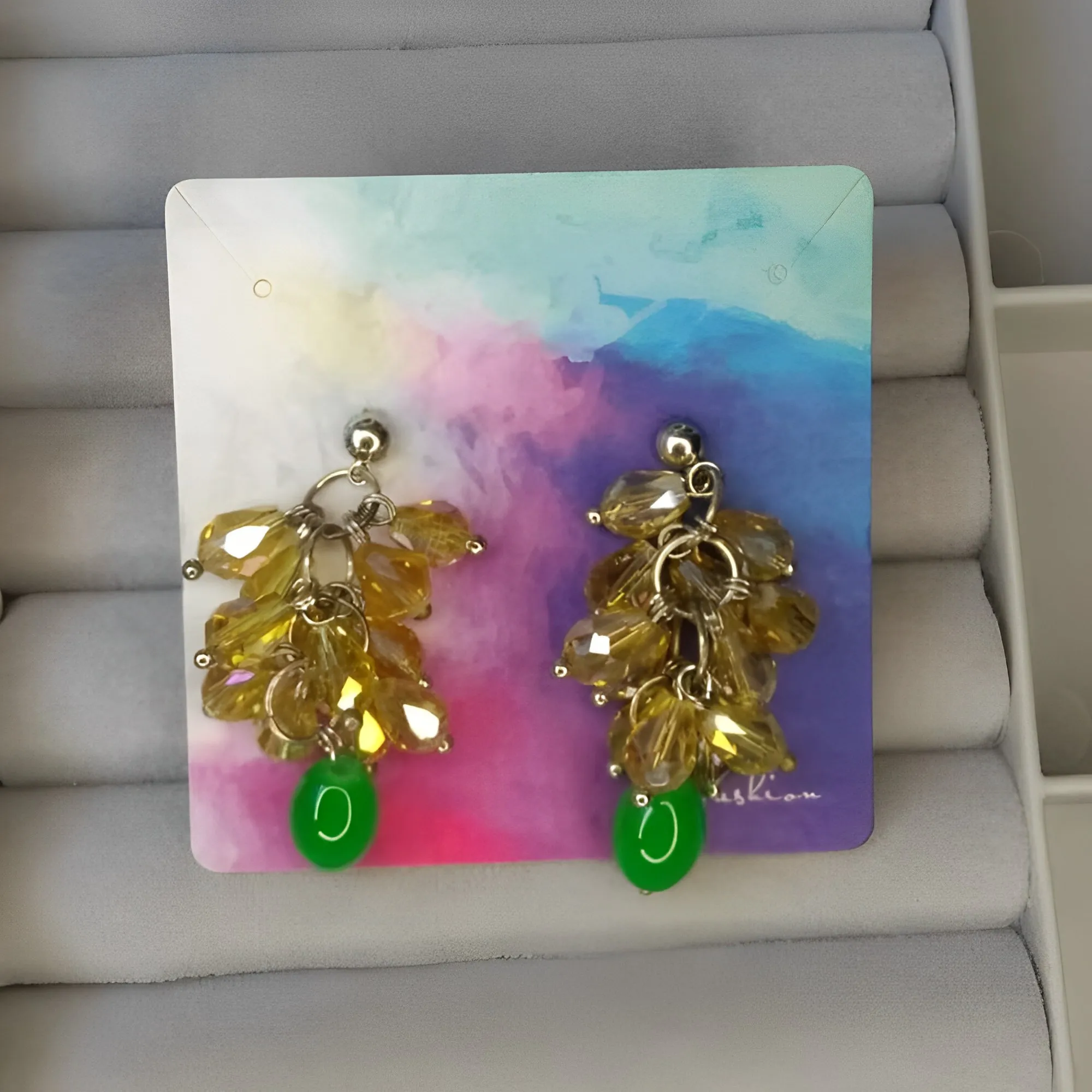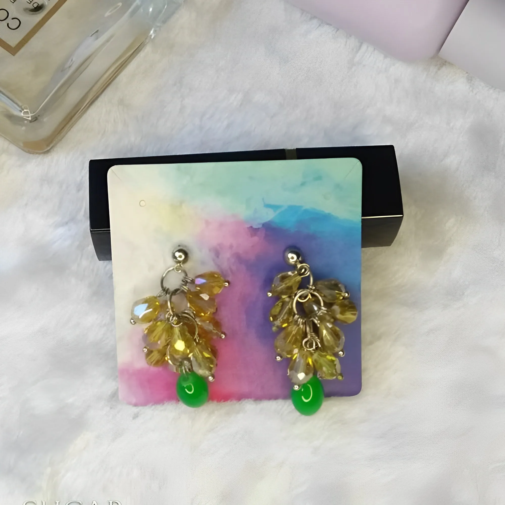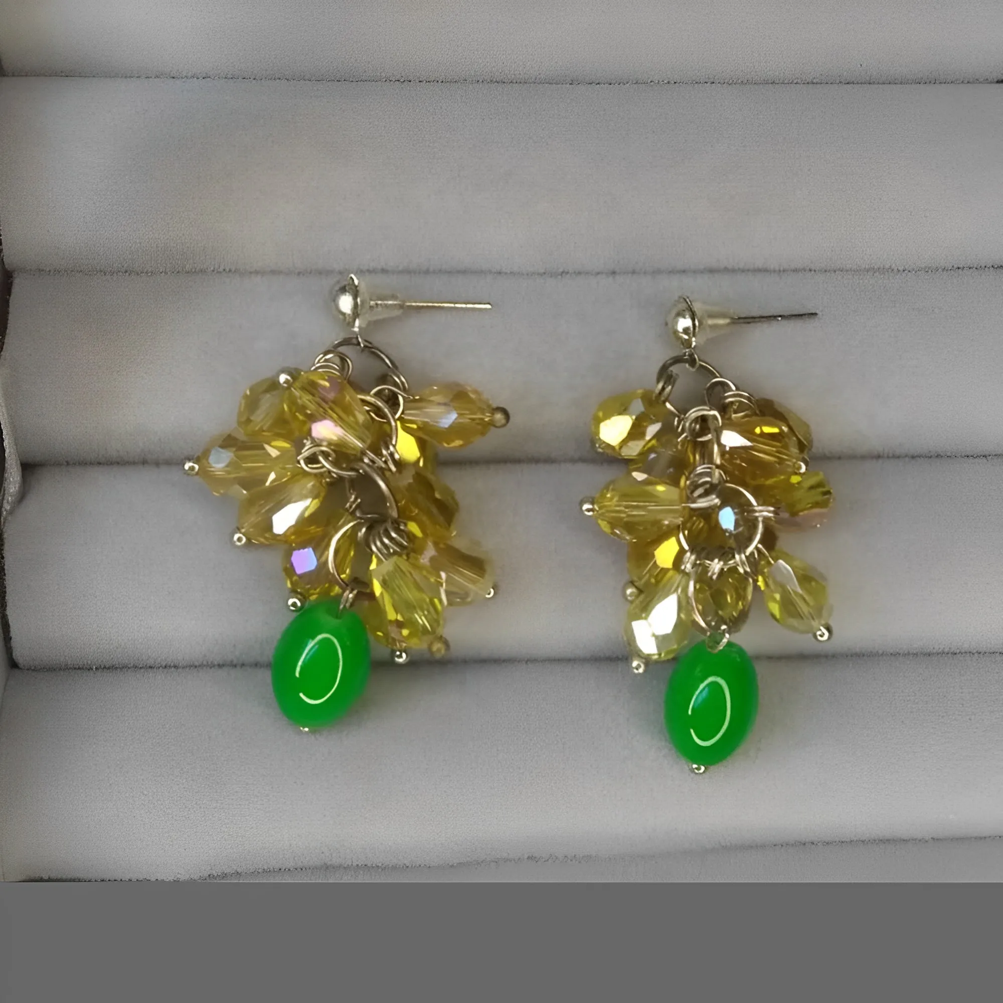 Champagne Green Glass Crystal Pendant Earrings Long Baroque Crystal Earrings Ba