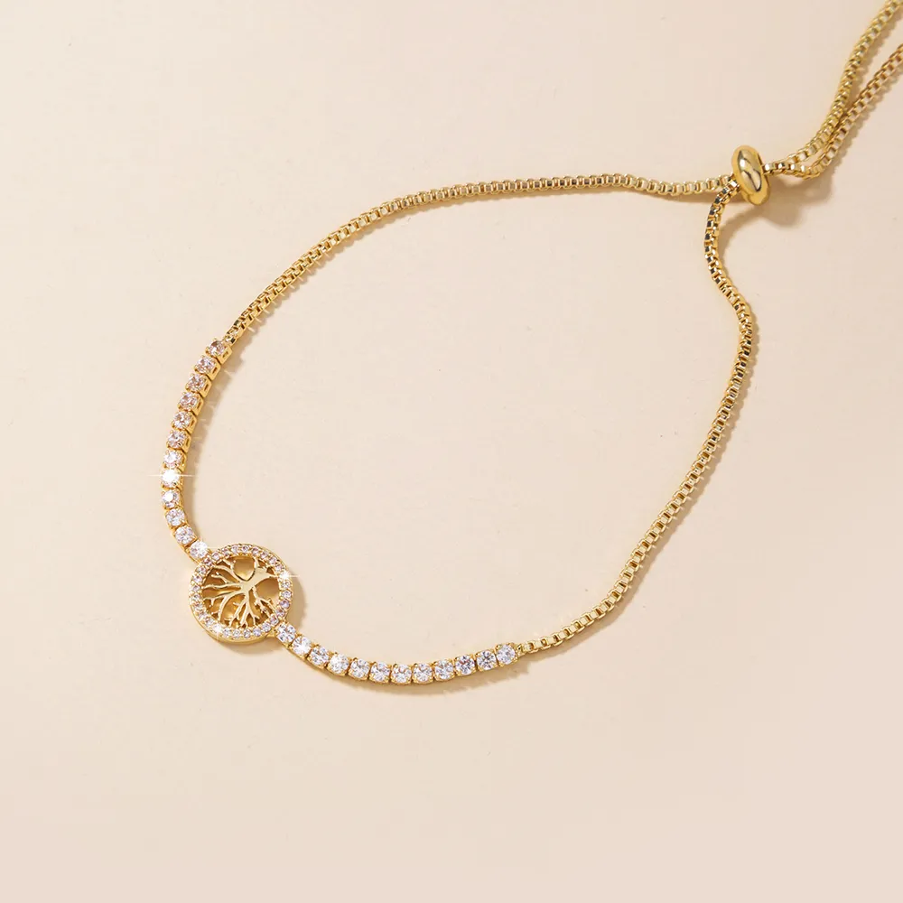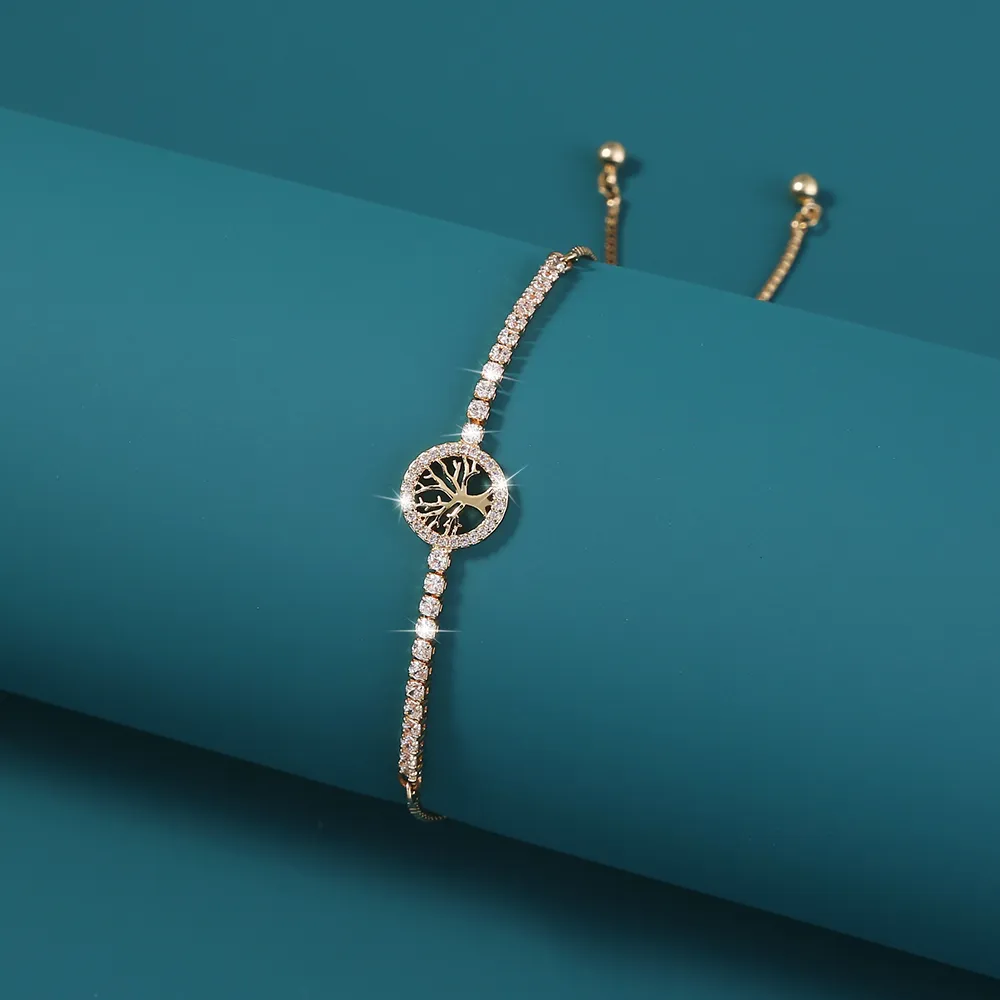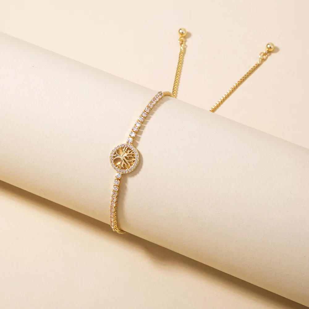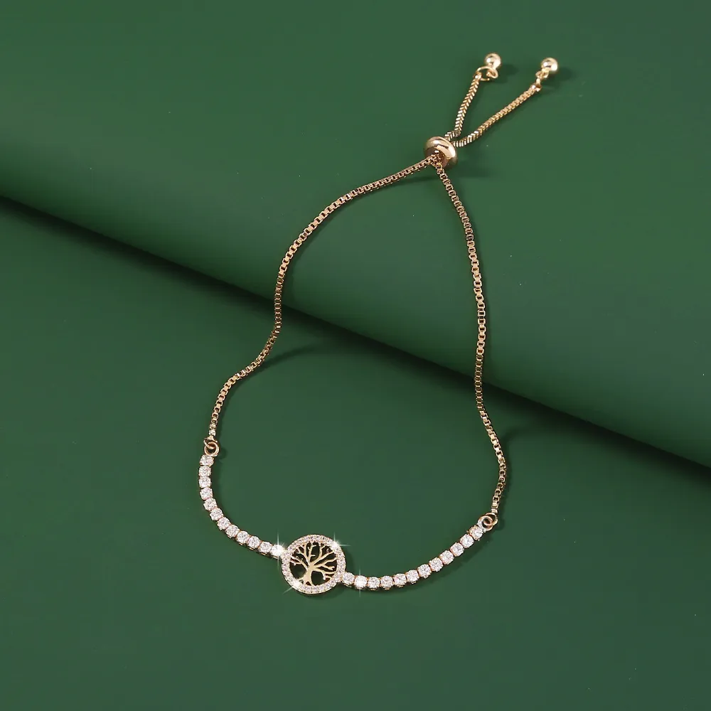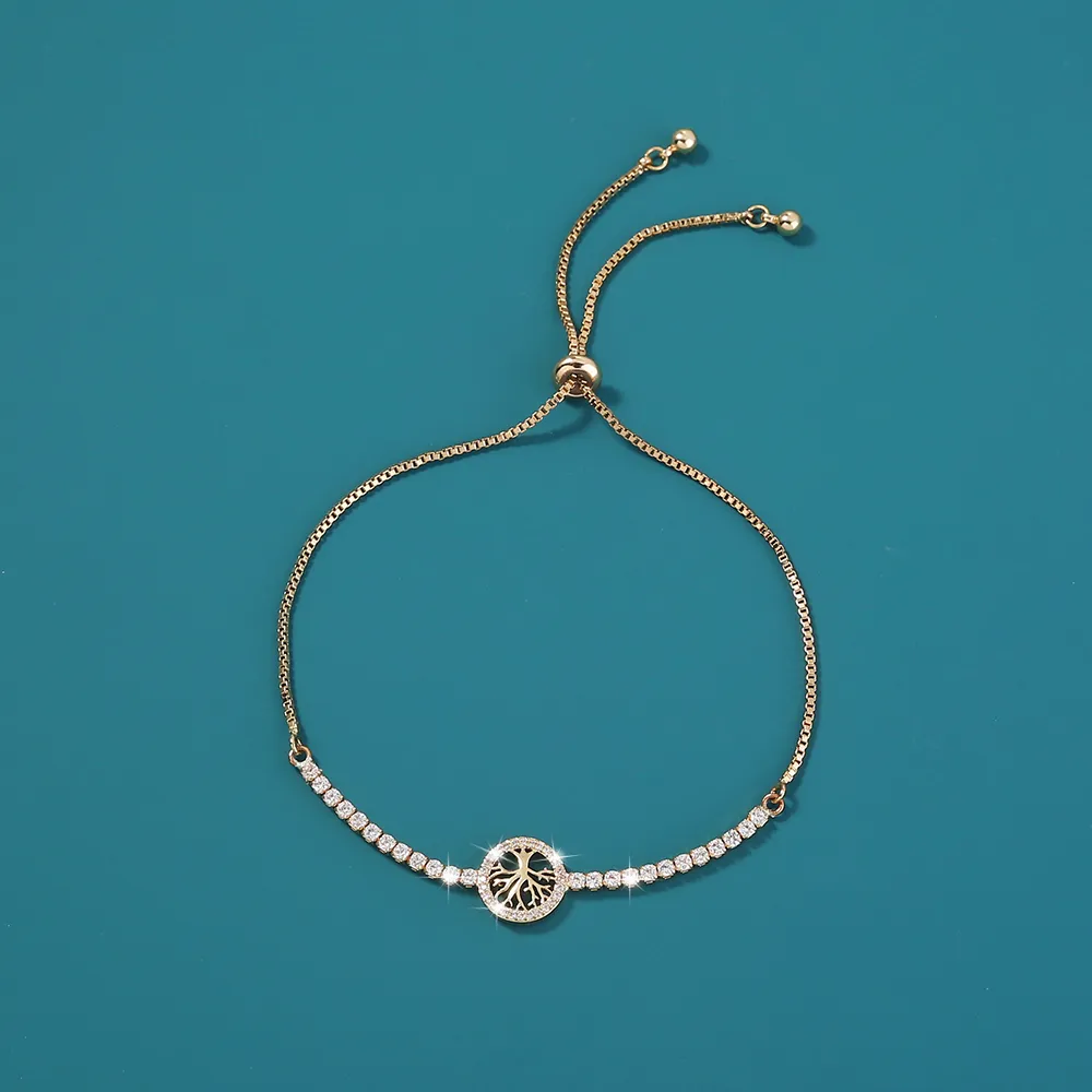 Copper Inlaid Zircon Tree of Life Pendant Shrink Pull Copper Bead Bracelet