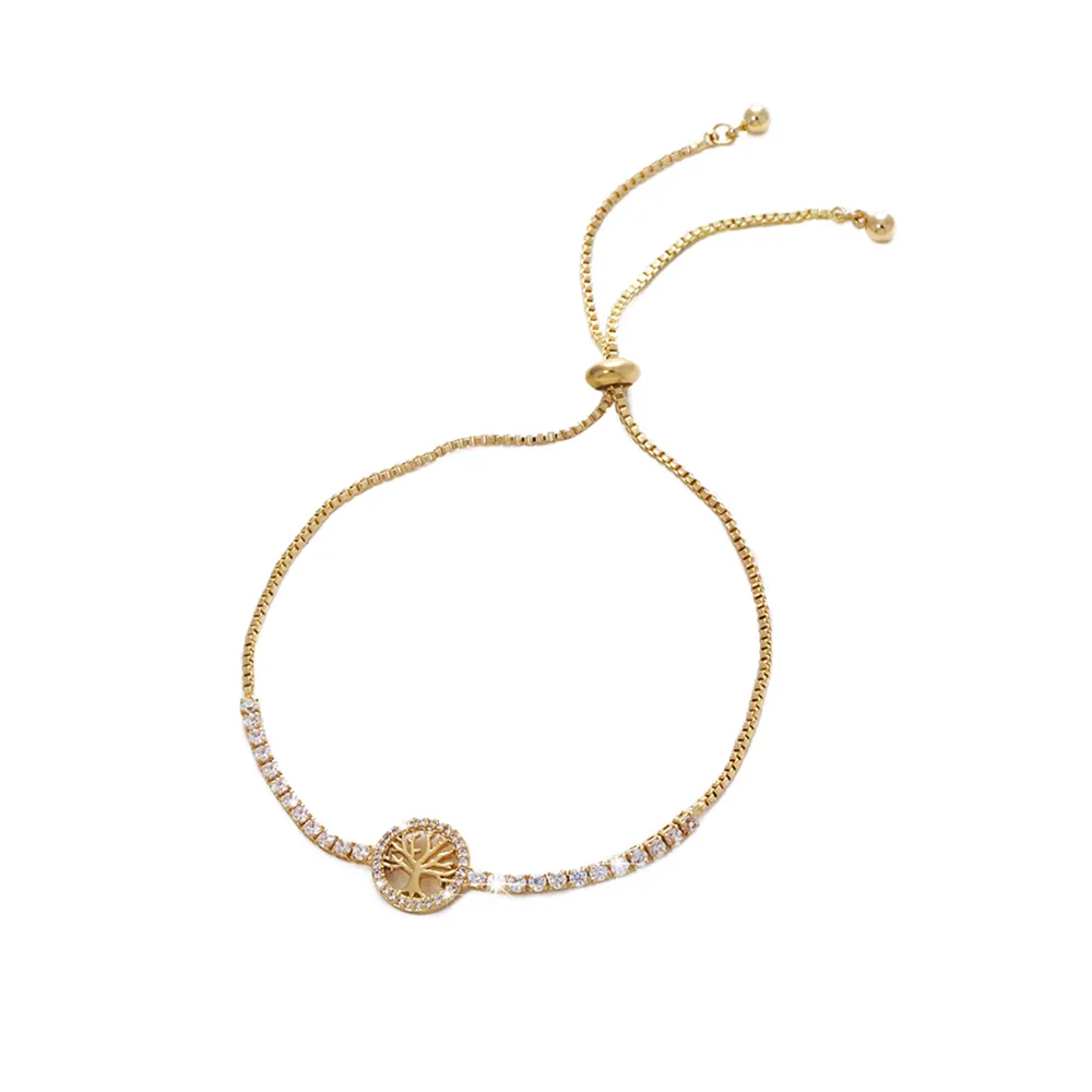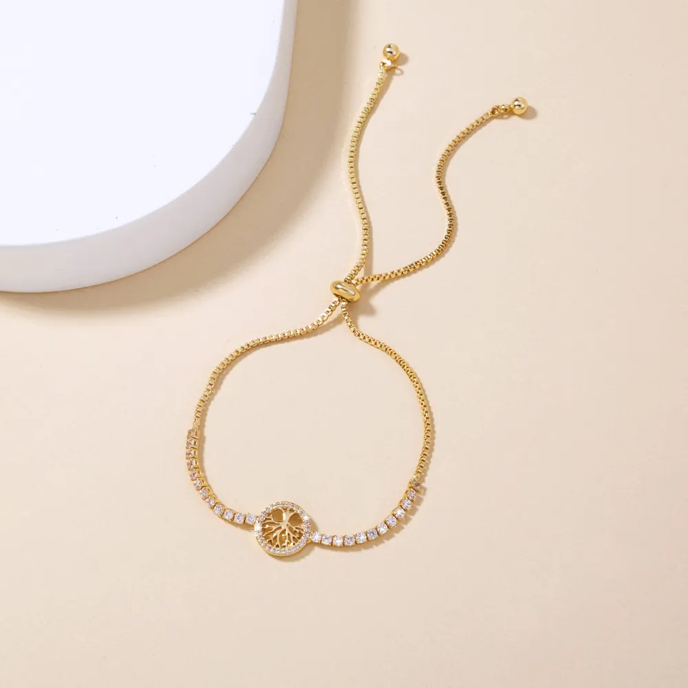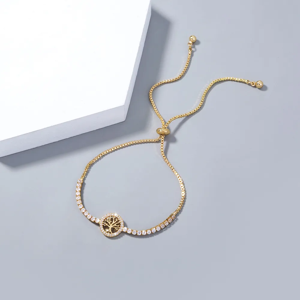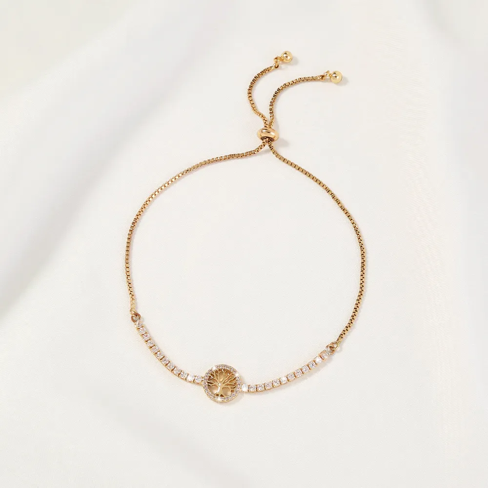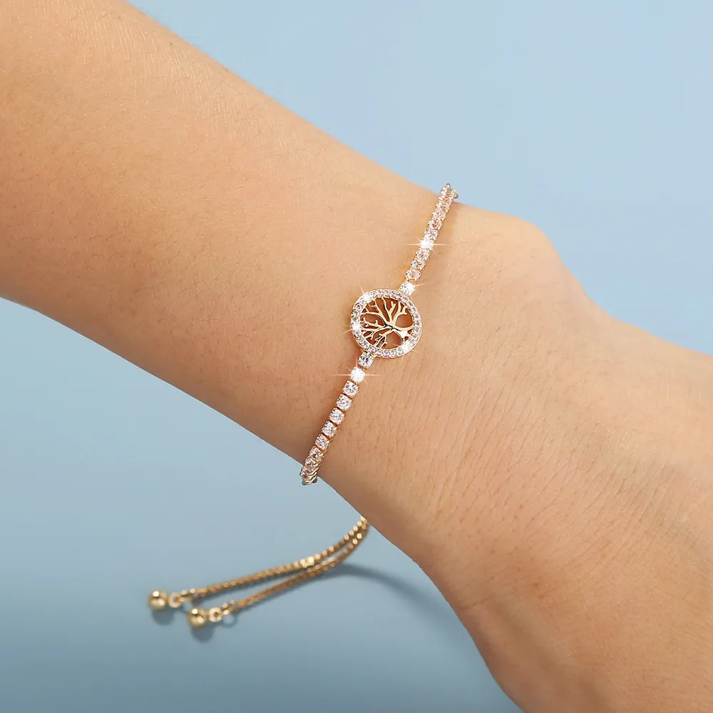 Copper Inlaid Zircon Tree of Life Pendant Shrink Pull Copper Bead Bracelet