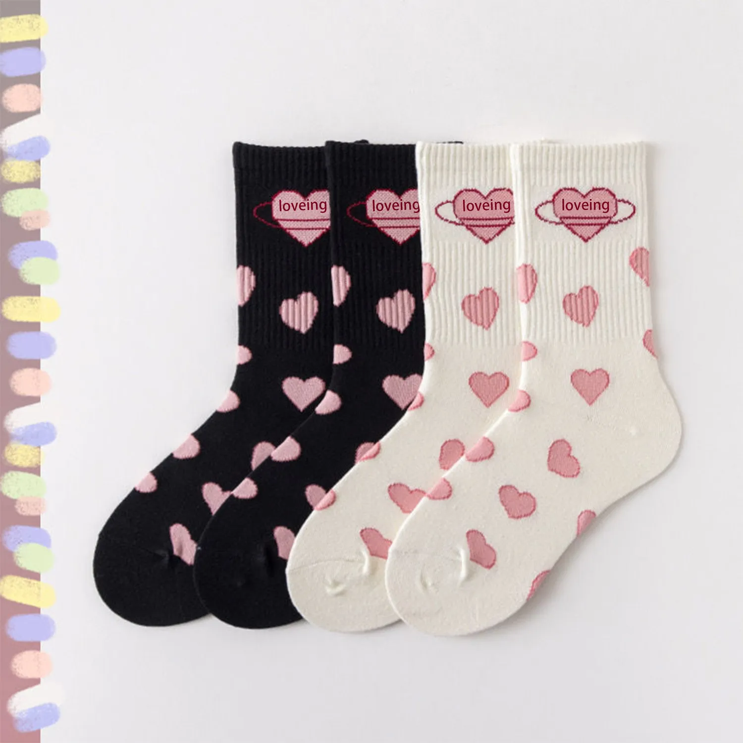 Love Black White Mid-tube Cute Students Girls Lolita Socks