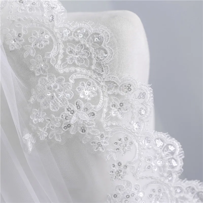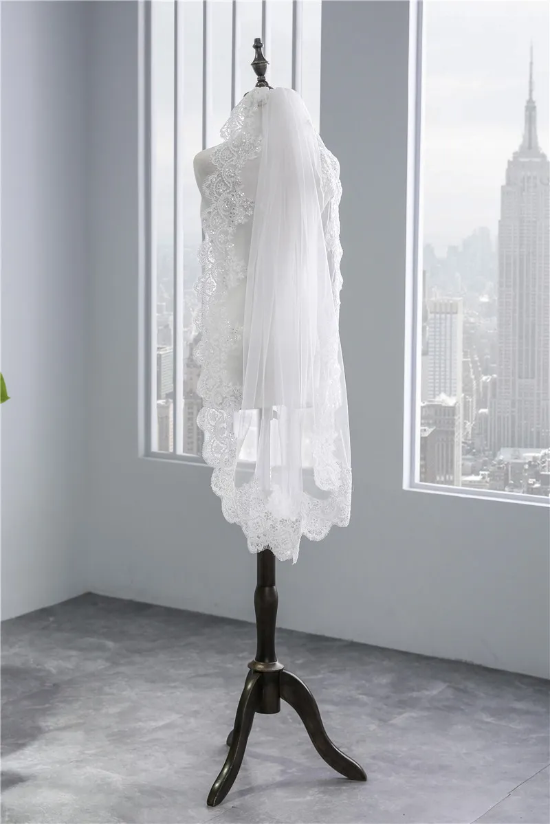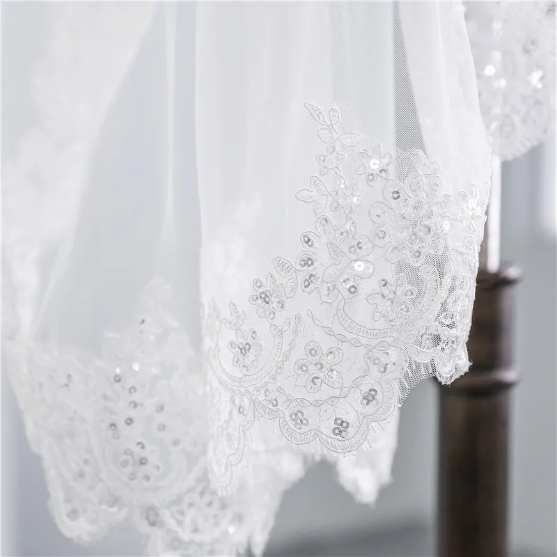 Short Veil Soft Mesh Sequined Lace White Ivory