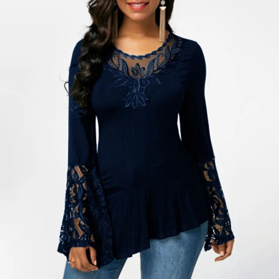 Plus Size Sexy Womens Autumn Winter Solid Pullover Long Flared Sleeve T-shirt L