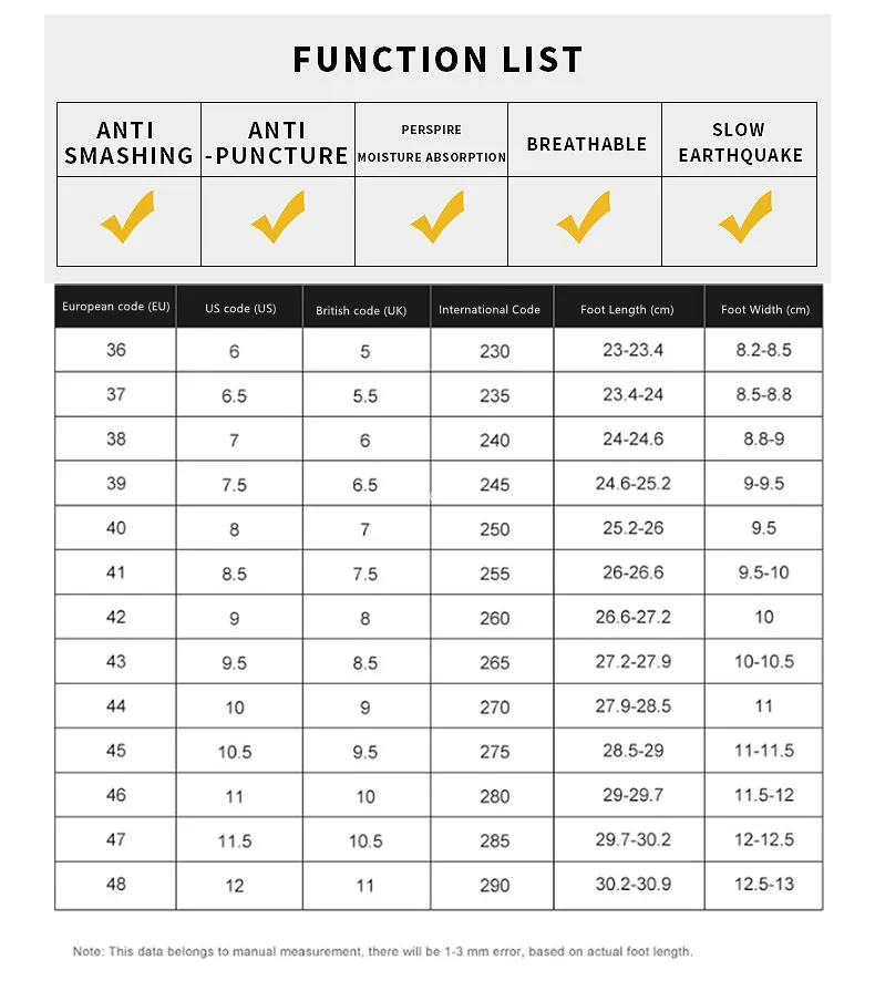 Sizes: 36, 37, 38, 39, 40, 41, 42, 43, 44, 45, 46, 47, 48