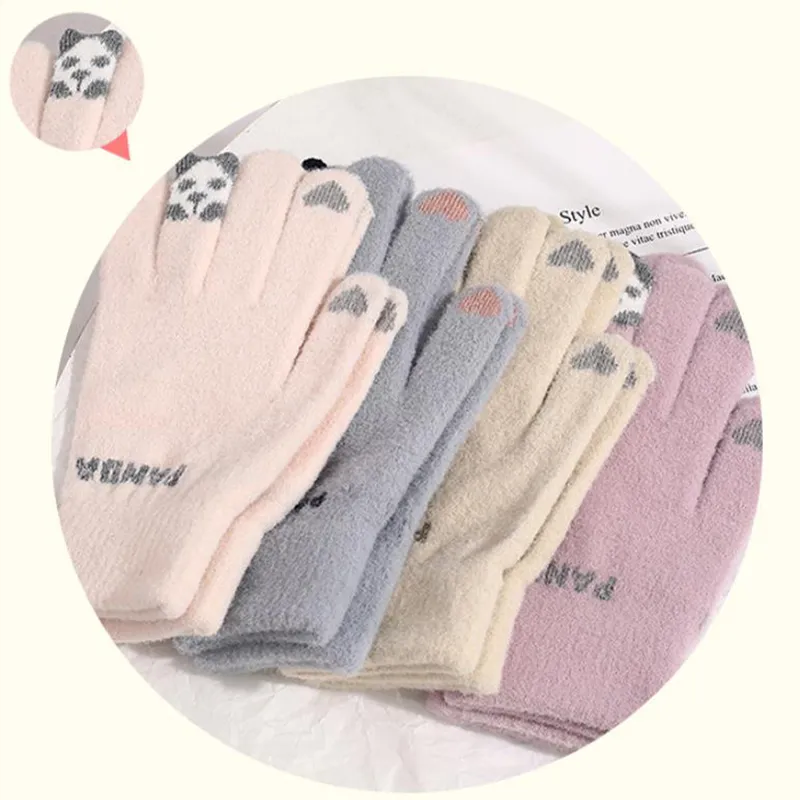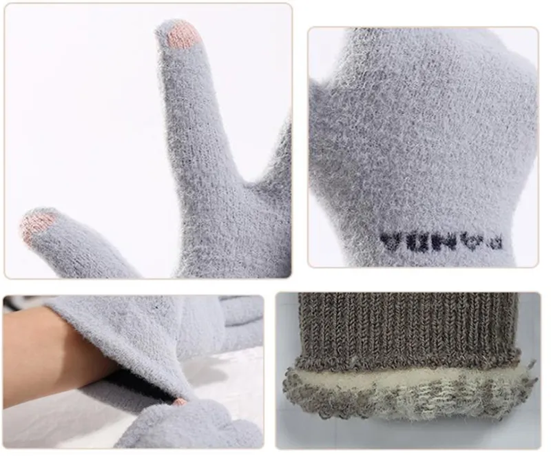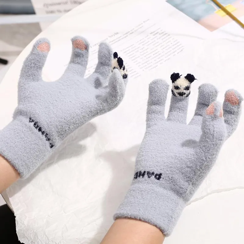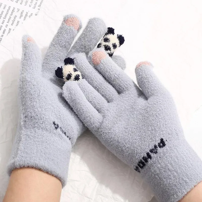 Knitted Gloves Touchscreen Winter Cute Panda Warm Goves For Cycling Women