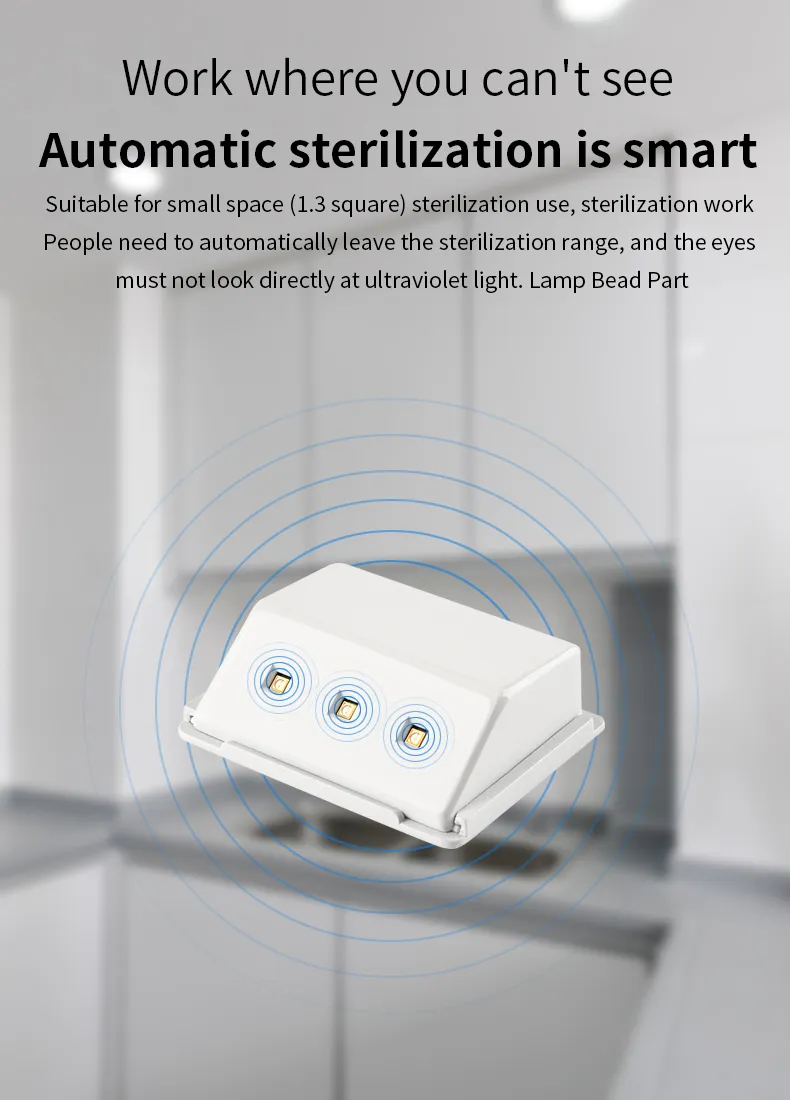 2. Install the cabinet door 5 mm away from the cabinet door, close the cabinet door for automatic sterilization, and open the cabinet door to stop sterilization.