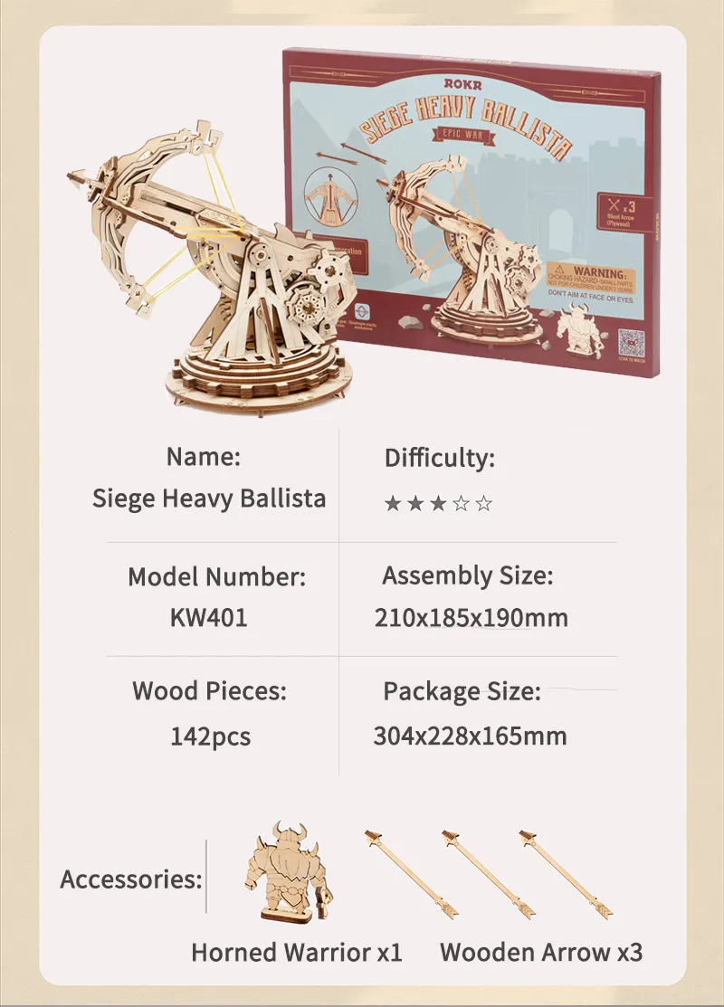Robotime ROKR Siege Heavy Ballista 3D Wooden Puzzle War Game Assembly Toys Gift