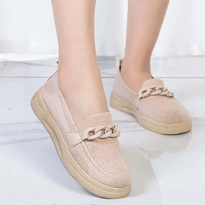 Chain Flats Shoes For Women Slip On Round Toe Comfortable Shoes