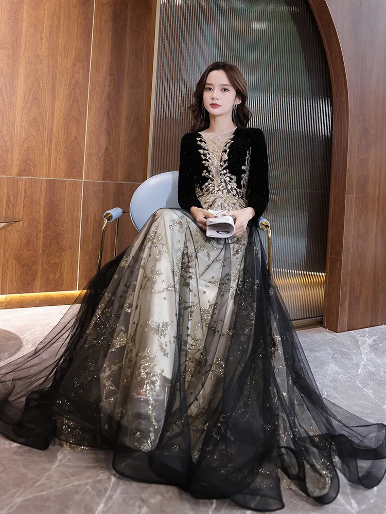 Black Moderator Long Sleeve Annual Party Dress