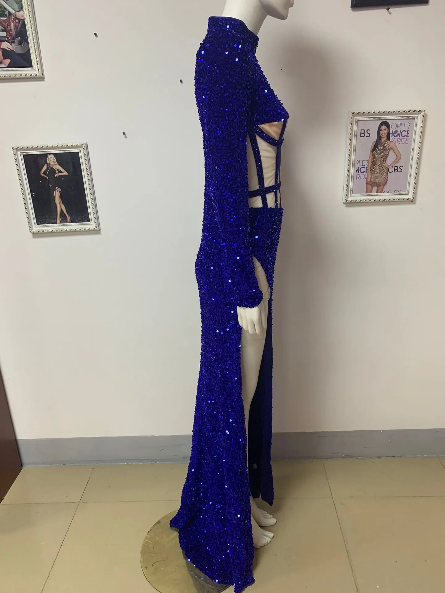 Blue Siren Ji Sequin See-through Dress With High Slit