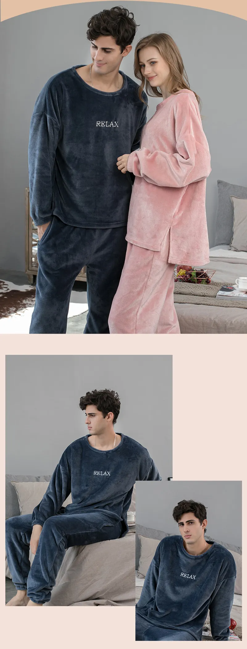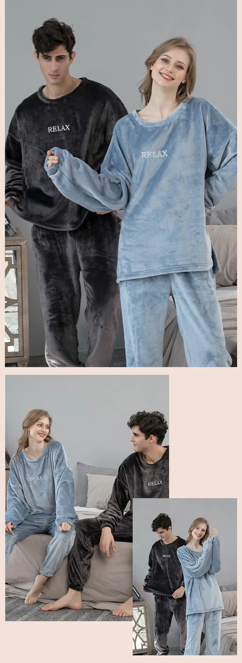 Flannel Pajamas Sets Winter Home Clothes For Women Men Sleepwear Couple