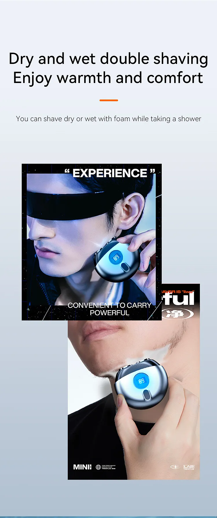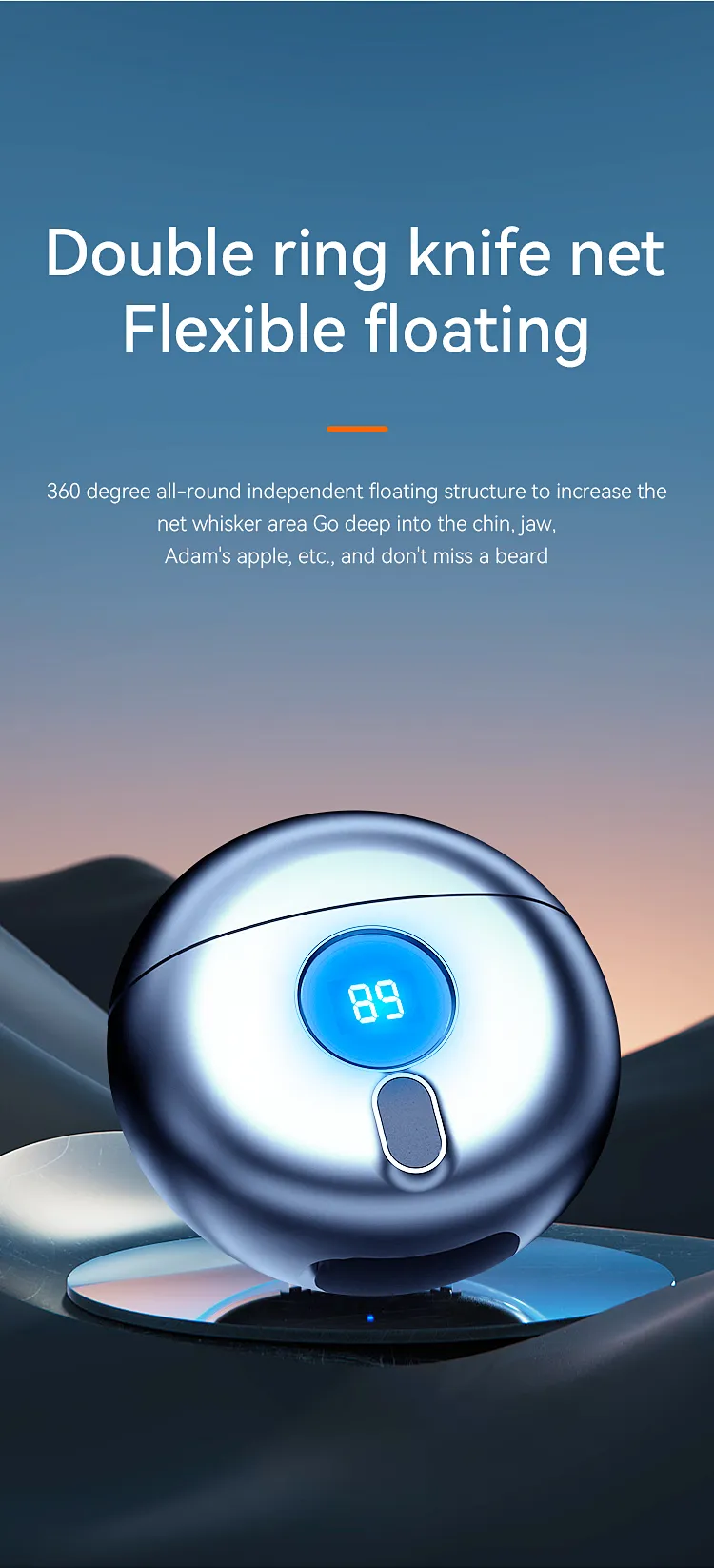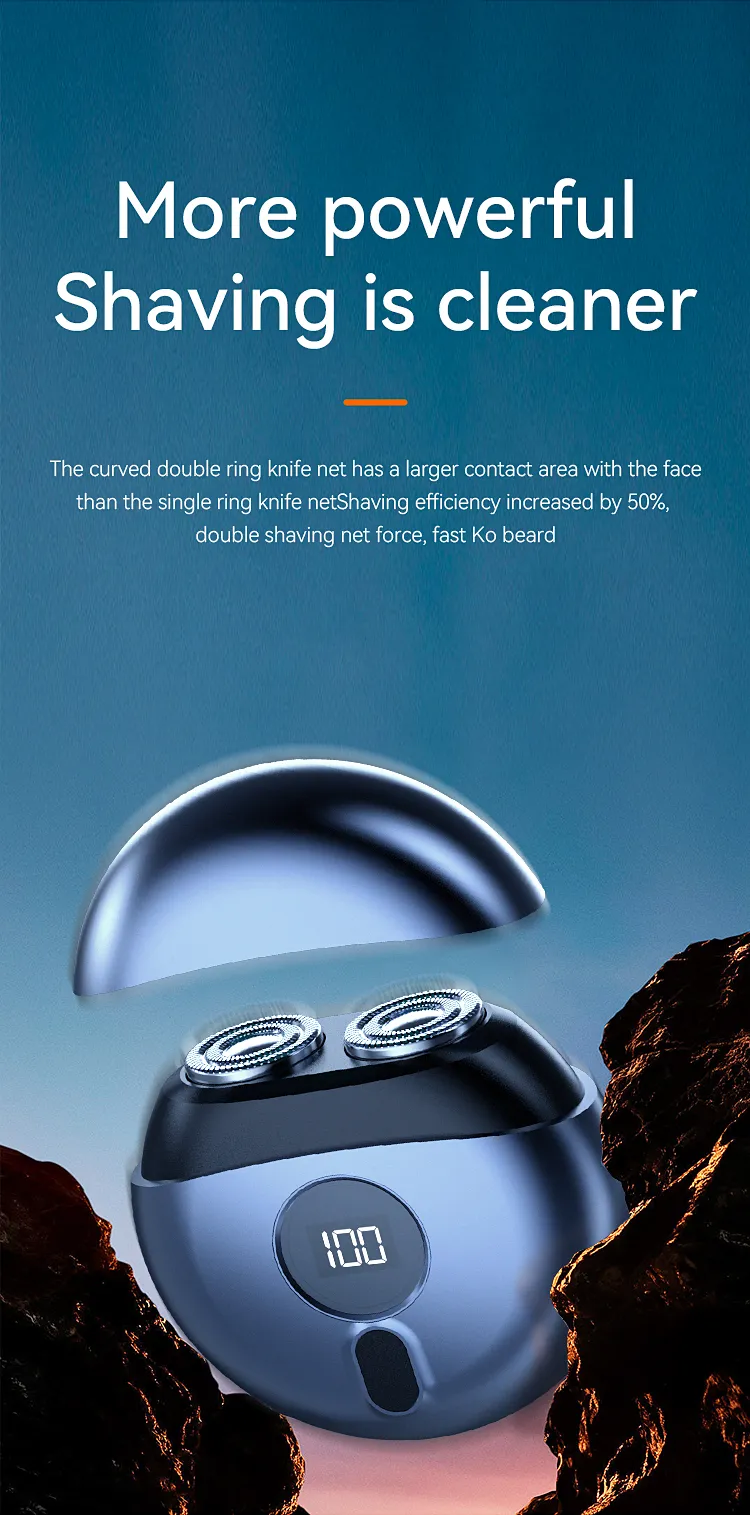2, Travel Men's Shaver:double-ring knife mesh,360-degree curved shaving