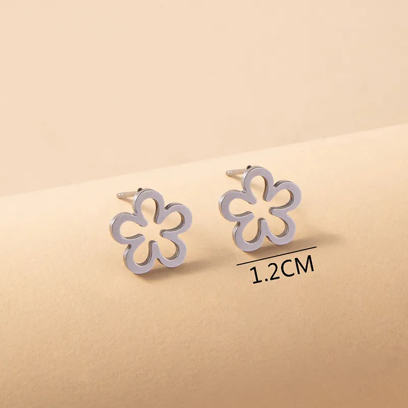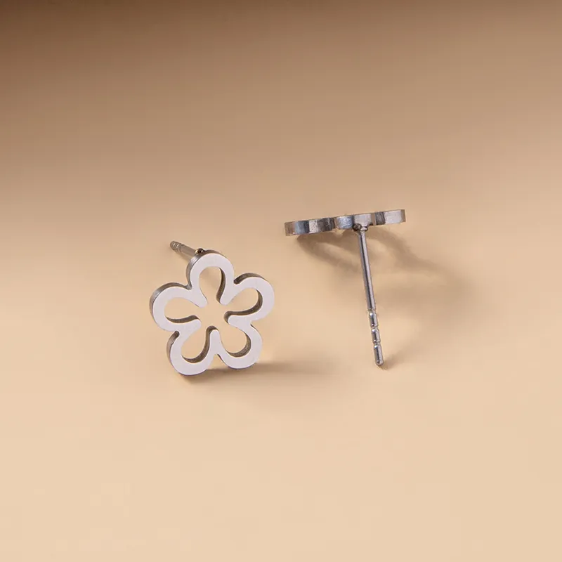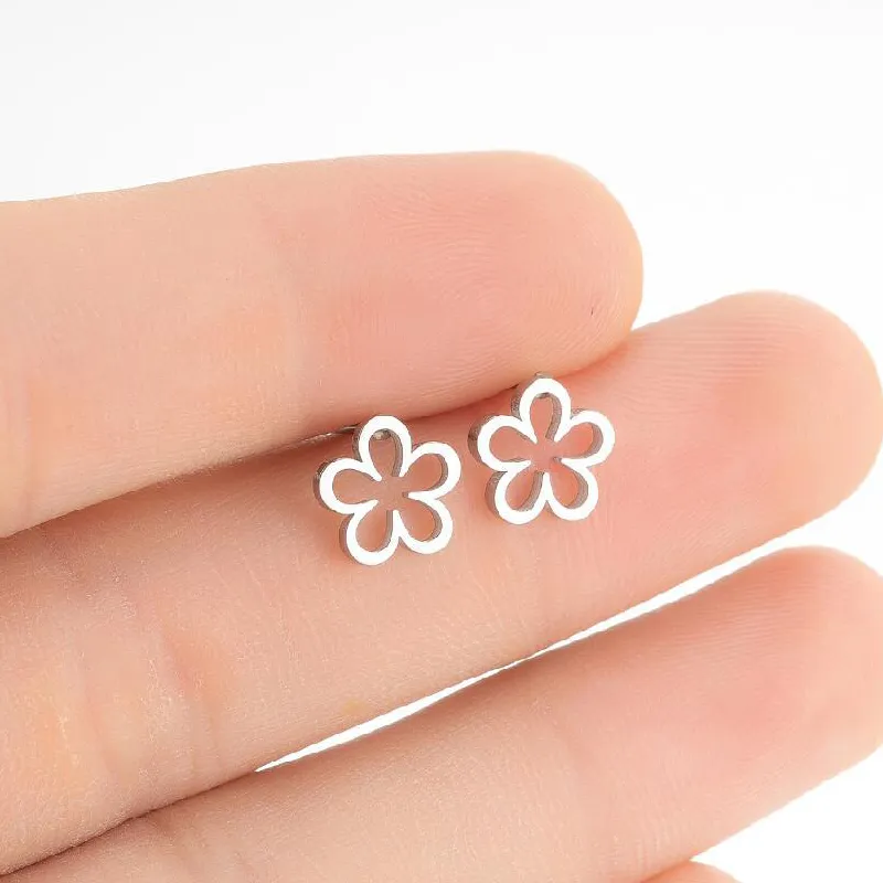 Dainty Silver Flower Stud Earrings Fashion Stainless Steel Hollow Daisy Earring