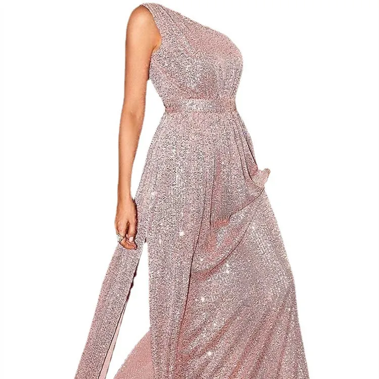 Women's Sequin One Shoulder Strapless Long Dress