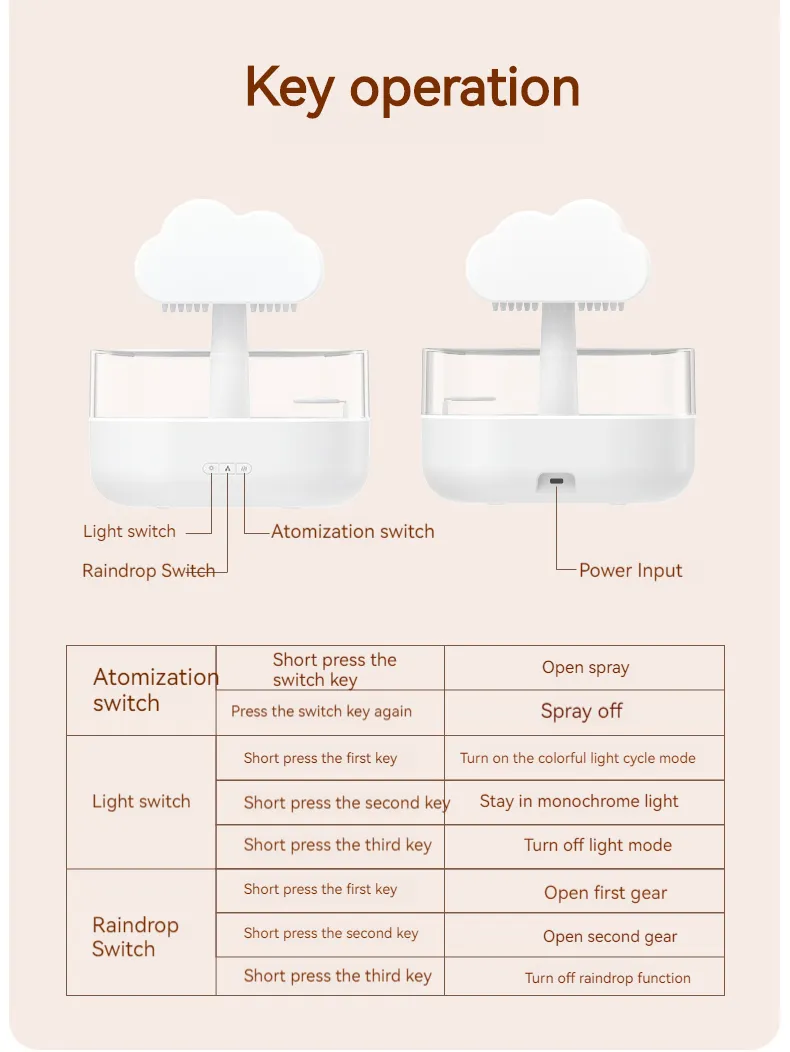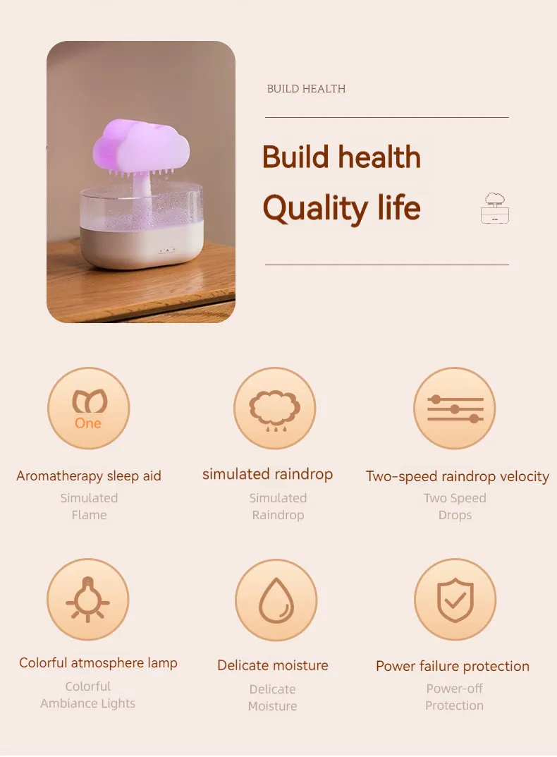 200ML Rain Cloud Humidifier Water Drip Rain Cloud Diffuser With Essential Oils