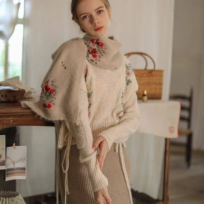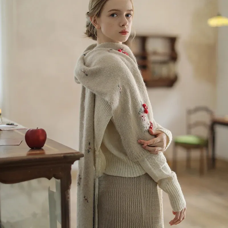 Face Art Handmade Embroidered 3D Hooked Lamb Hair Soft And Versatile French Sca