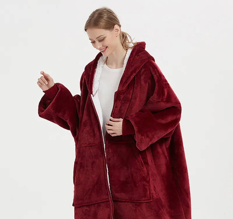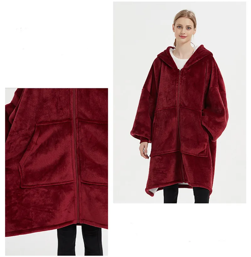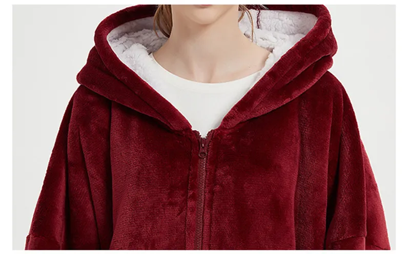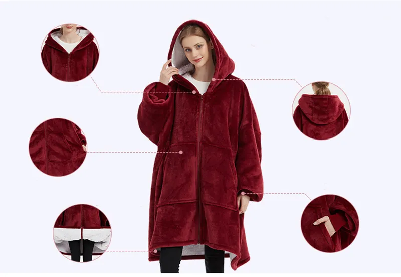 Plus Size Robe Winter Wearable Blanket Sweatshirt Women Men Warm And Cozy Giant