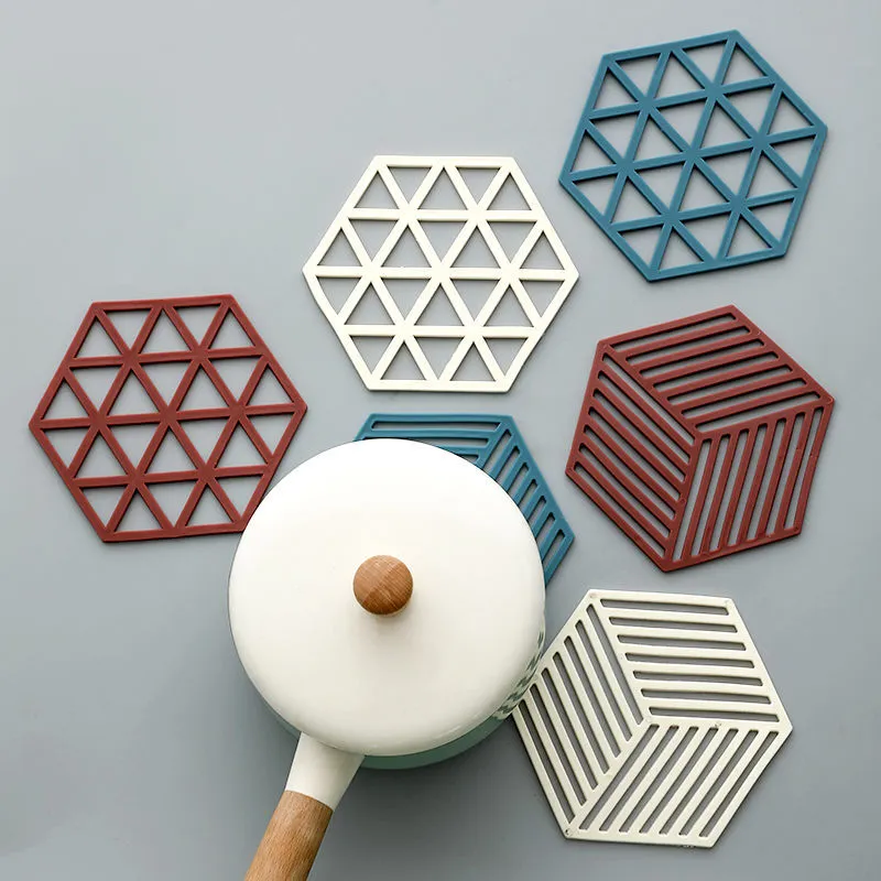 2pcs Silicone Tableware Insulation Mat Coaster Hexagon Silicone Mats Pad Heat-insulated Bowl Placemat Home Table Decor Kitchen Tools