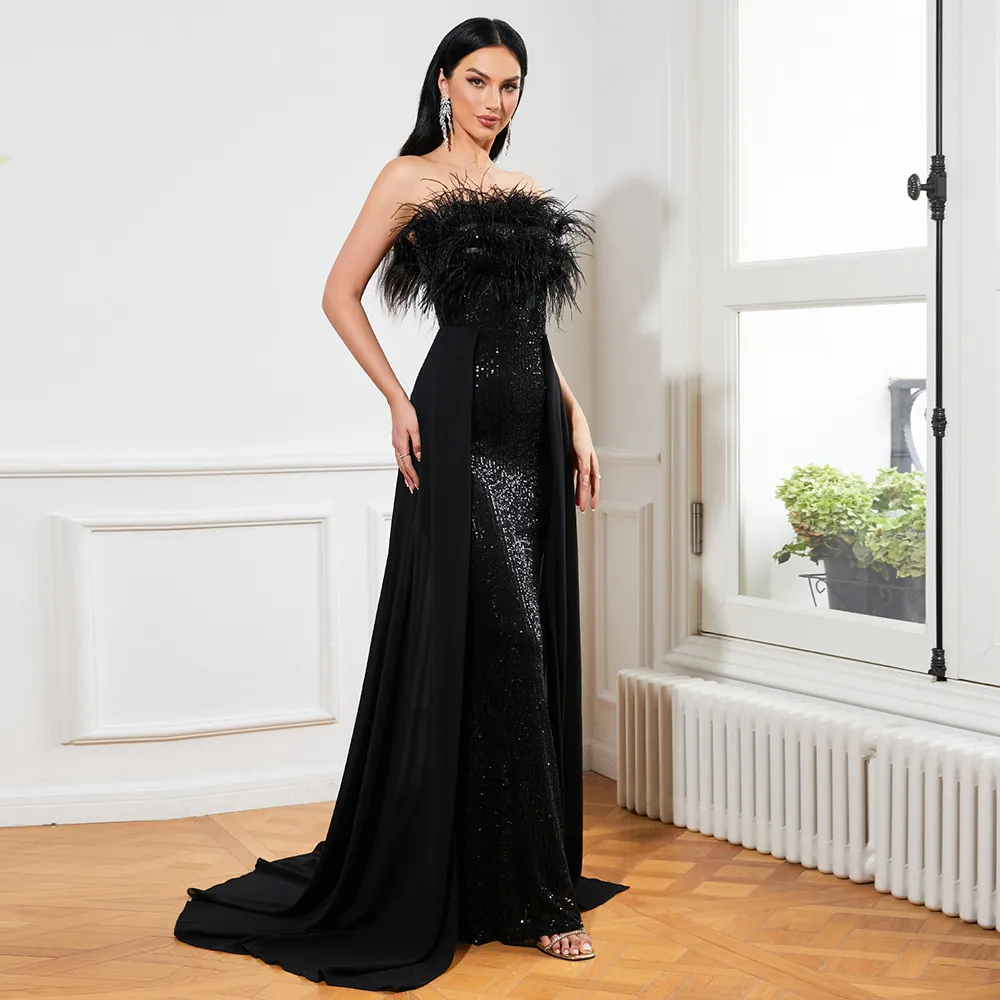 European And American Temperament Long Sequined Sleeveless Wrapped Chest Backle