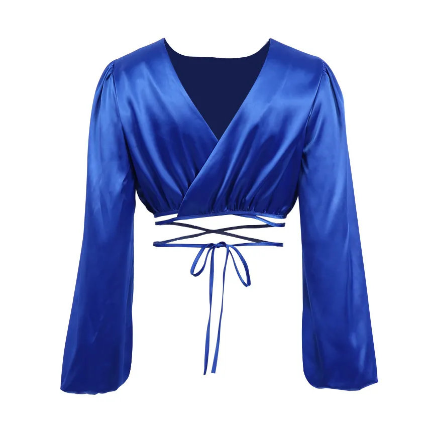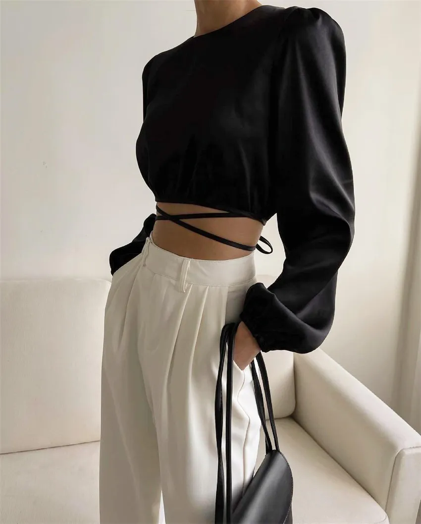 New Lace-up Backless Design Sense Short Section Sexy Navel Long-sleeved Tops Eu
