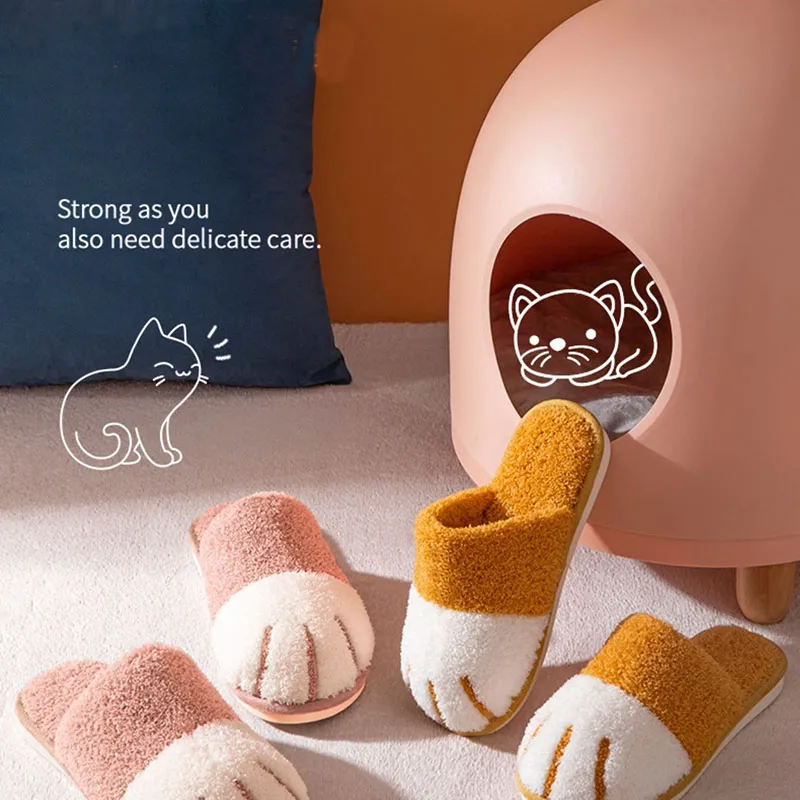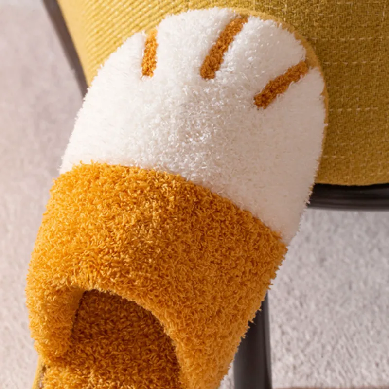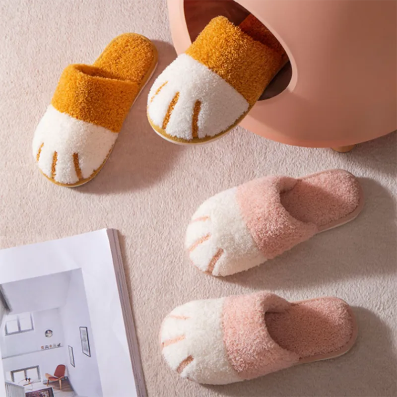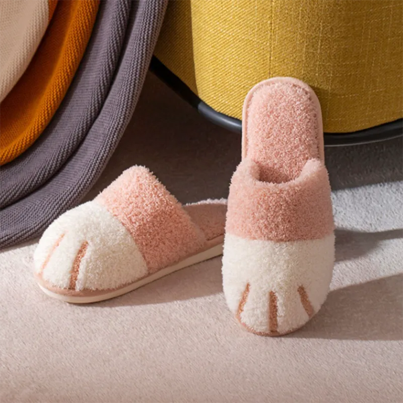 Paw Slippers Autumn Winter Home Shoes Women Kawaii Furry Slides Indoor Floor Be