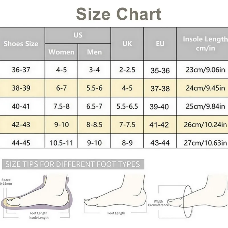 Size: 36-37 (suitable for 35-36 feet), 38-39 (suitable for 37-38 feet), 40-41 (suitable for 39-40 feet), 42-43 (suitable for 41-42 feet), 44-45 (suitable for 43-44 feet)