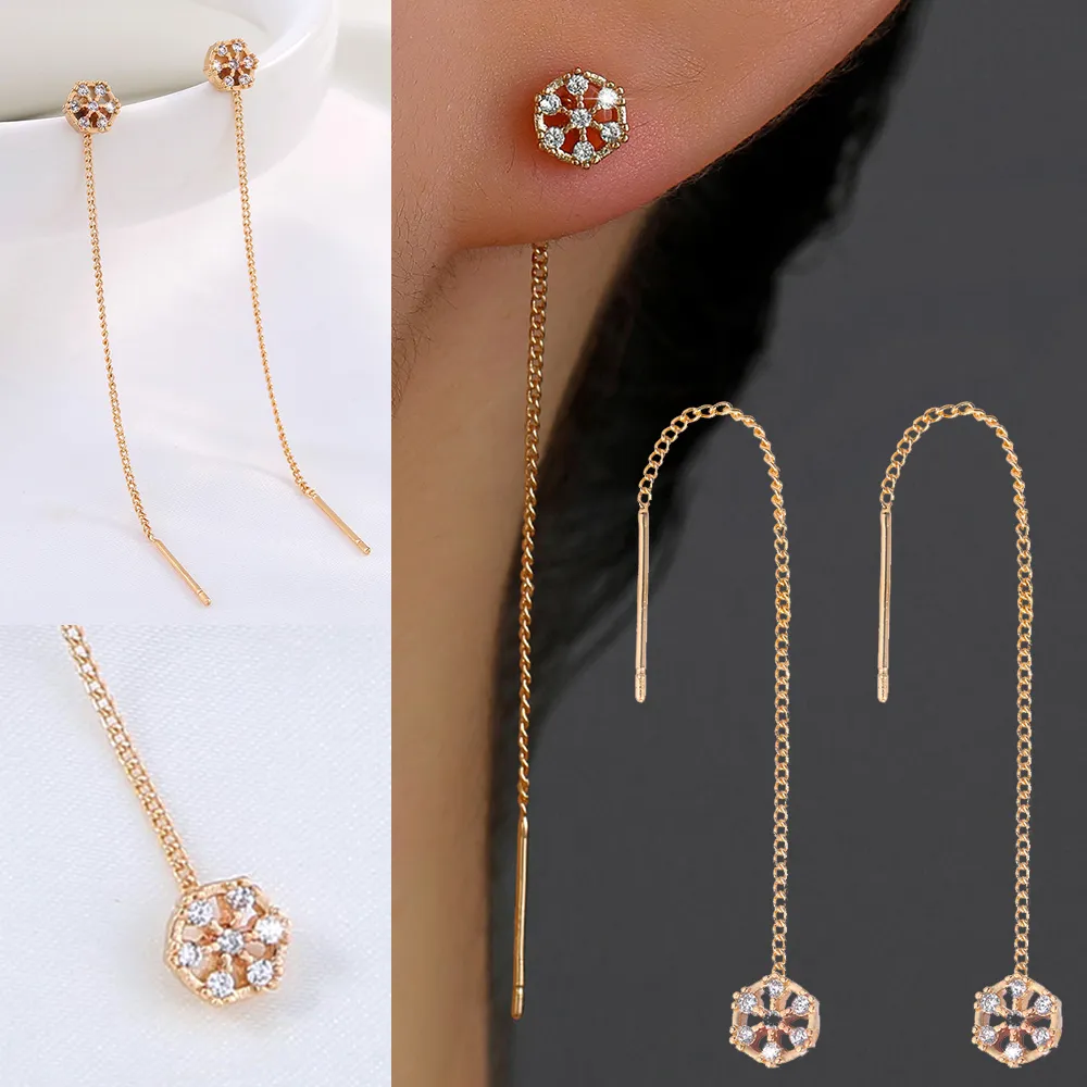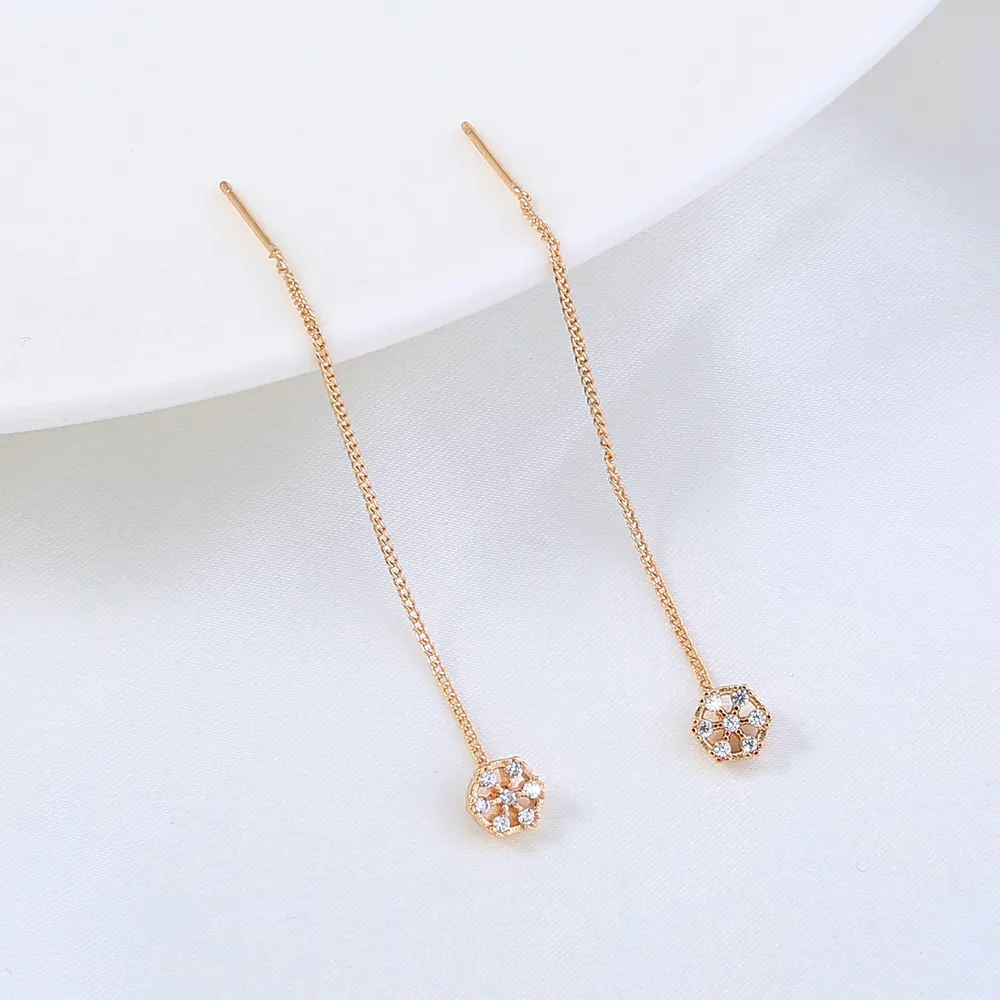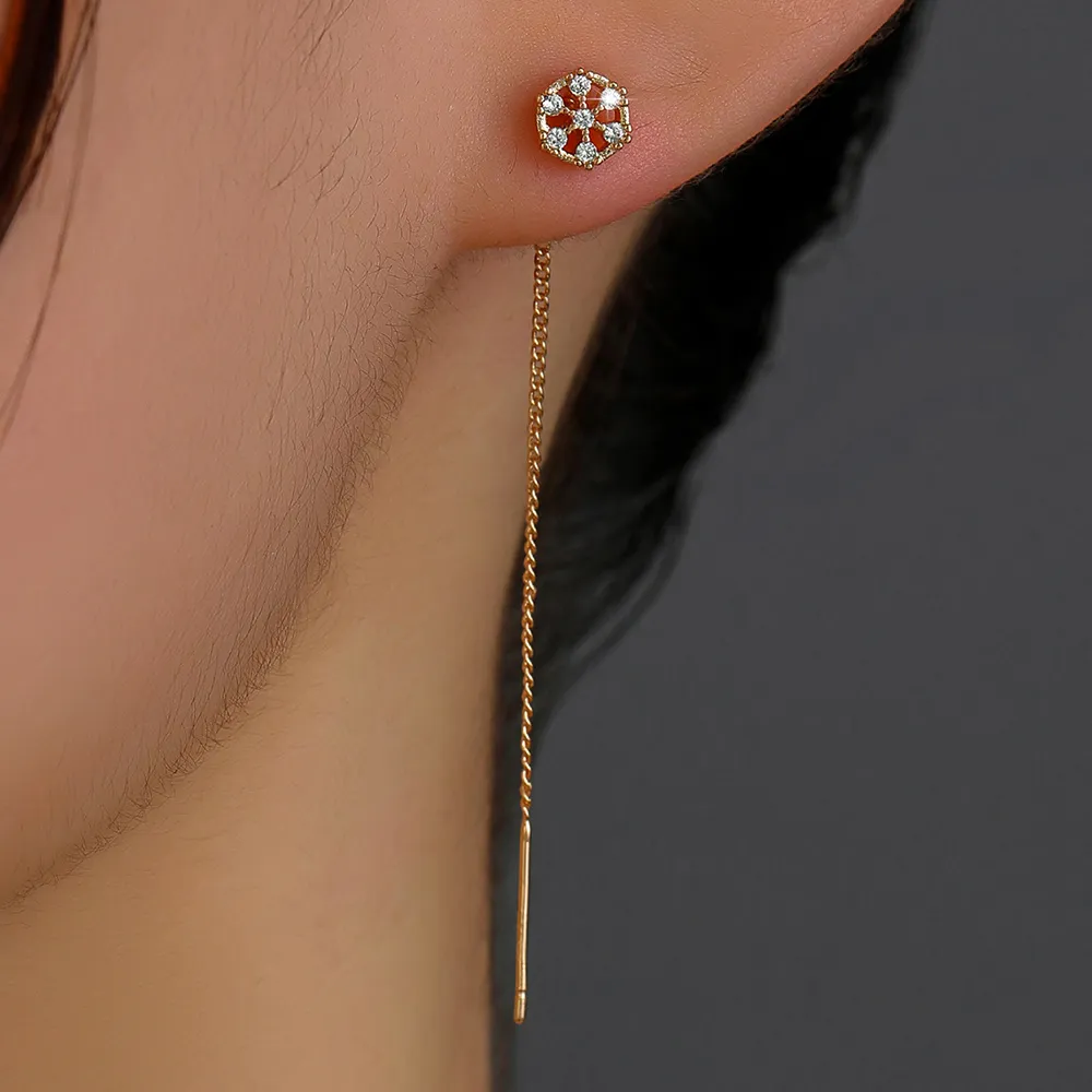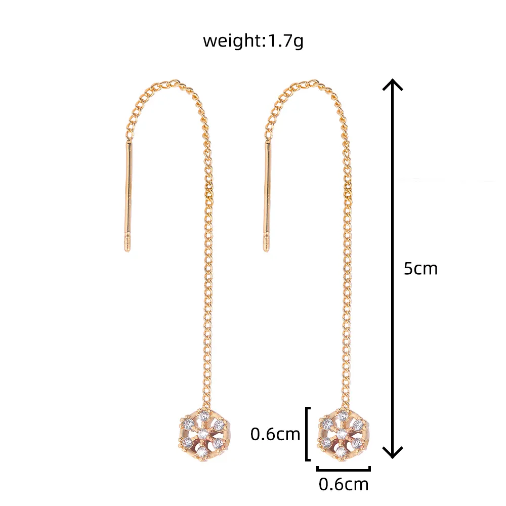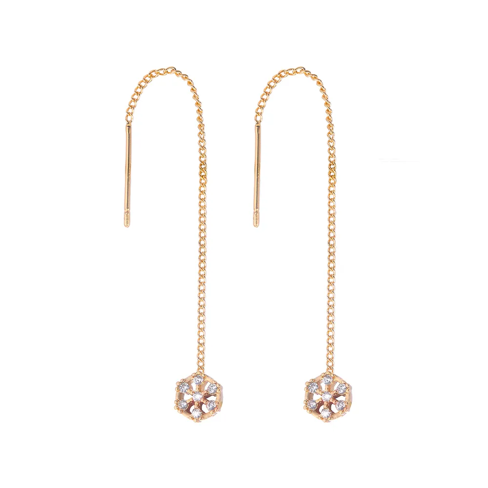 Polygonal Cutout Copper Zircon Pendant Ear Wire
