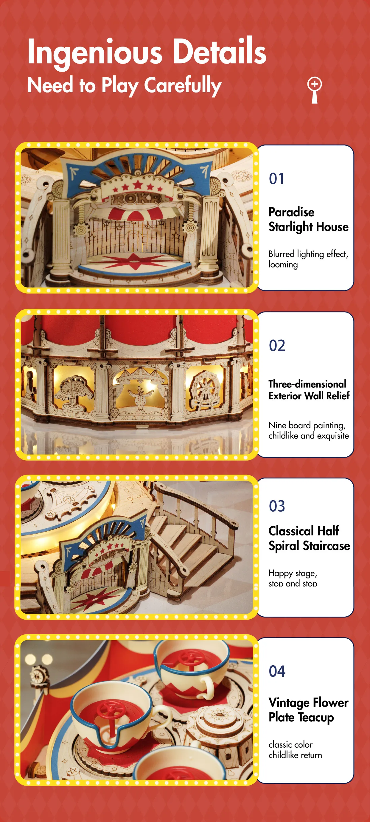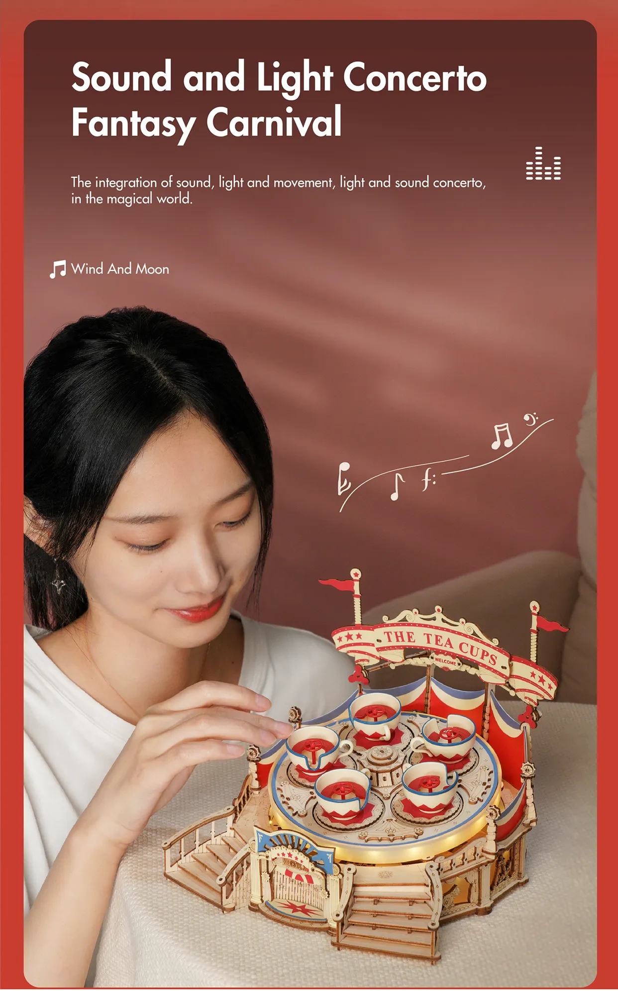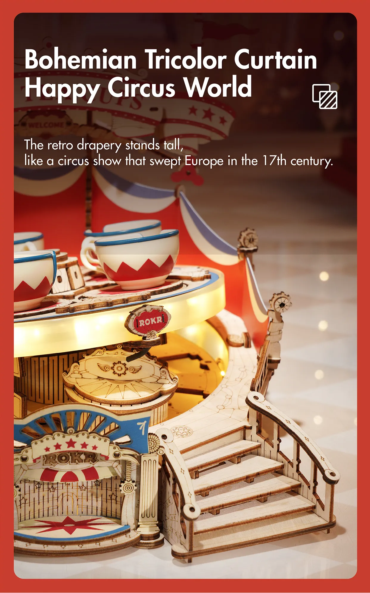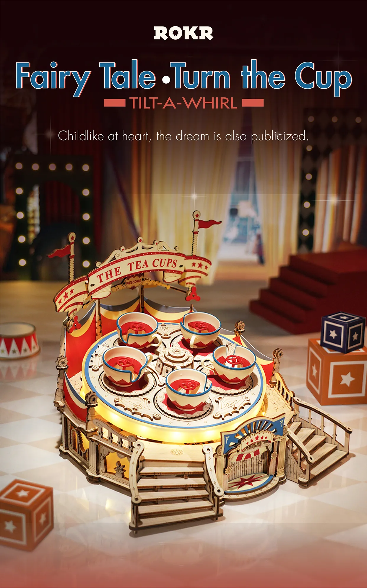 Robotime Rokr Tilt-A-Whirl The Tea Cup Amusement Park Series Building Toy Birth