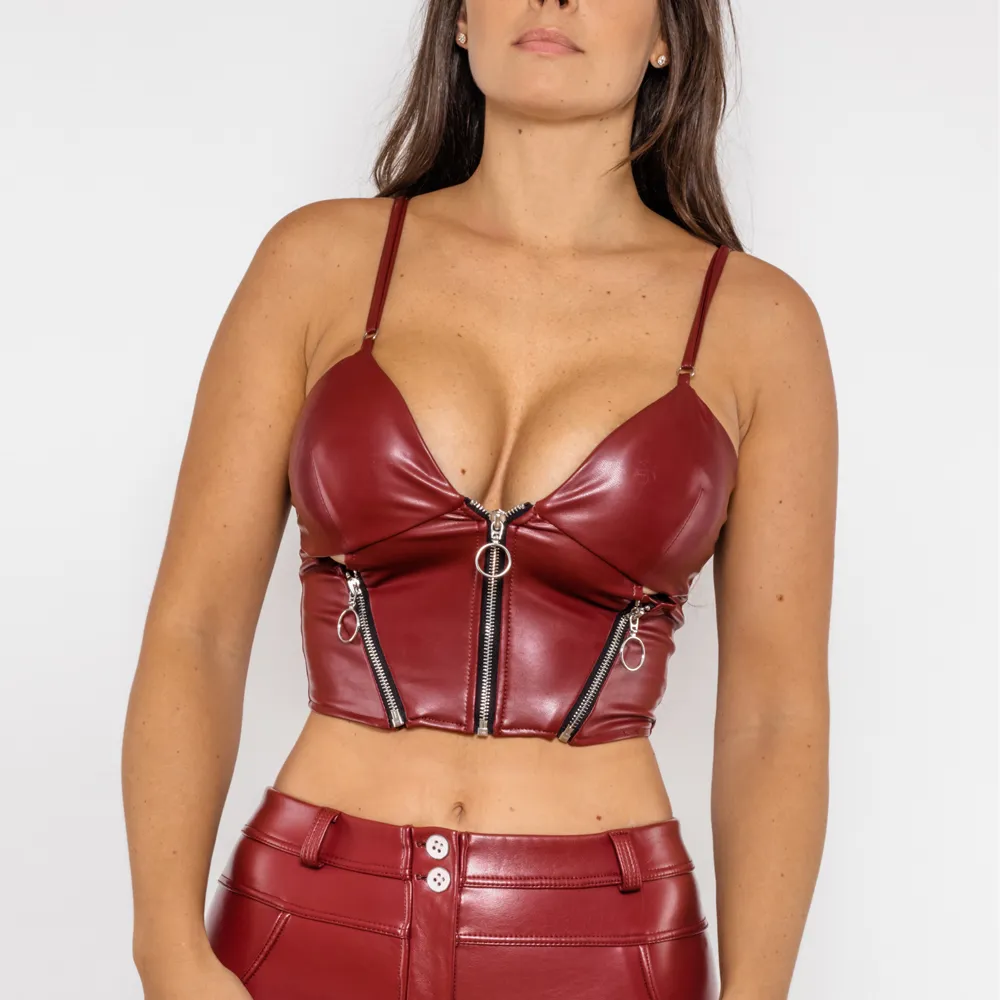 Shascullfites Melody Burgundy Leather Shapers Shaping Tops Body Shaper Shaping