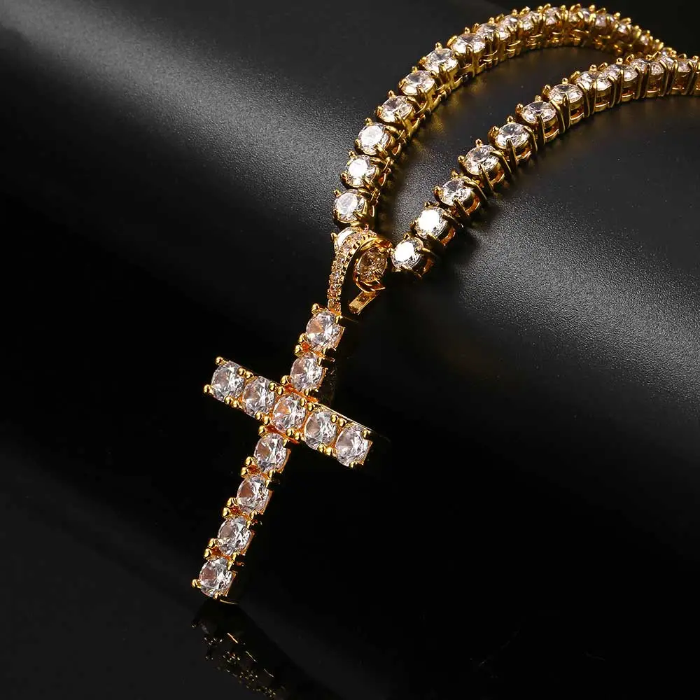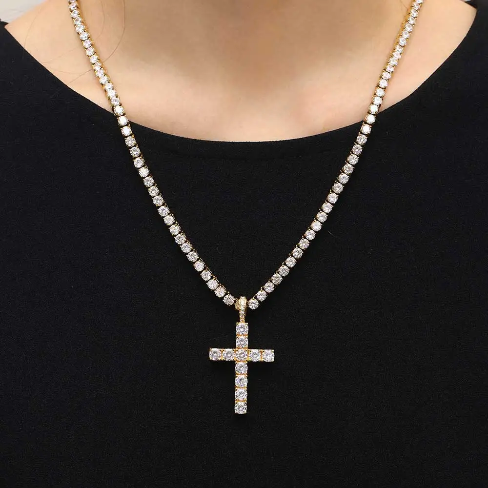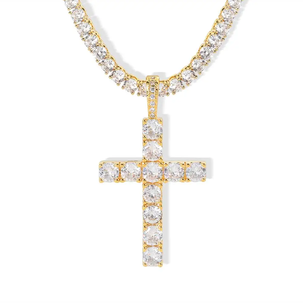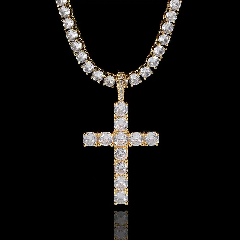 Solid Large Cross Pendant Micro-Set Hip Hop Necklace