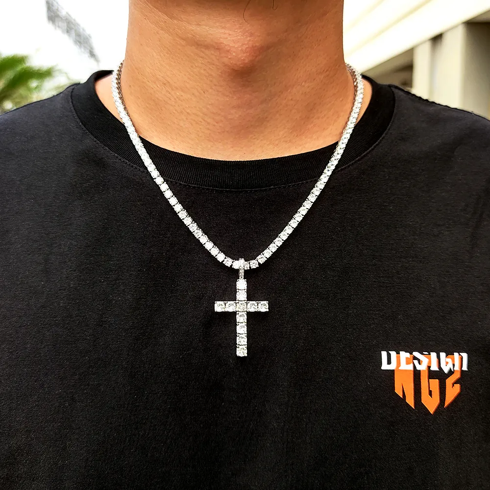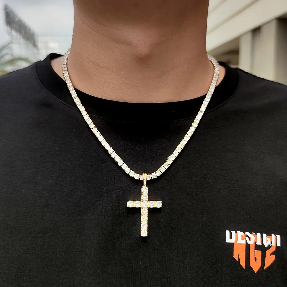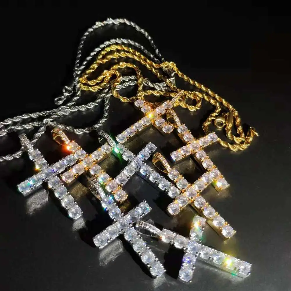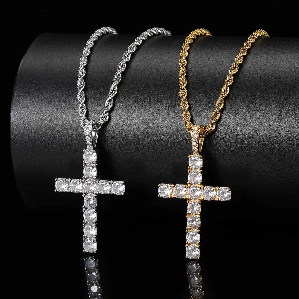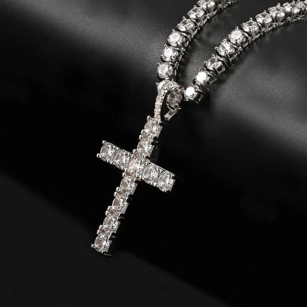 Solid Large Cross Pendant Micro-Set Hip Hop Necklace
