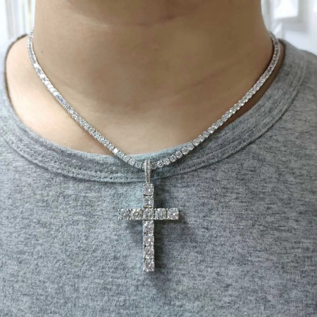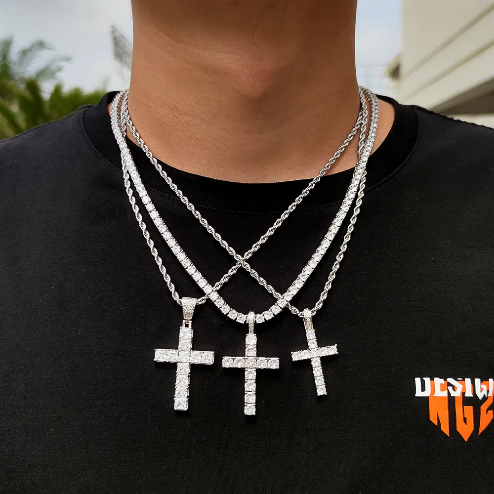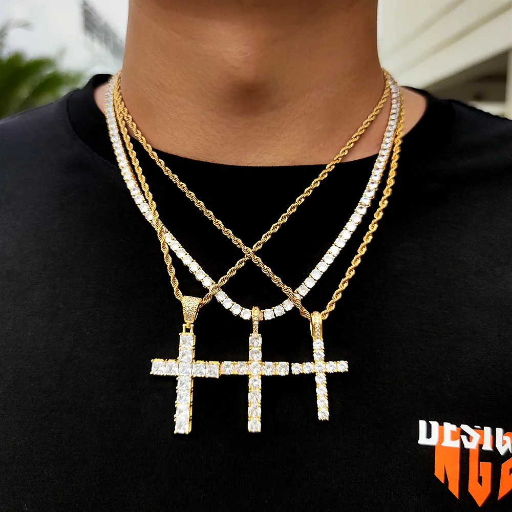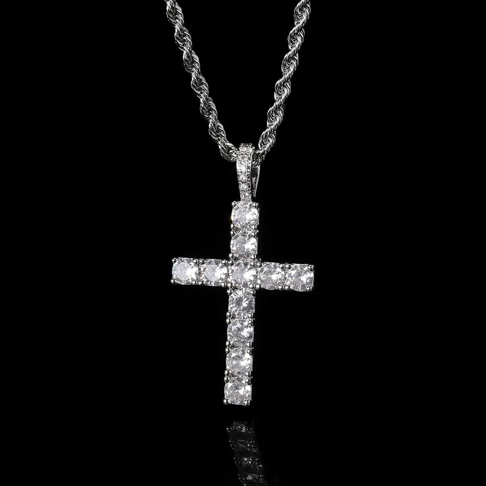 Solid Large Cross Pendant Micro-Set Hip Hop Necklace