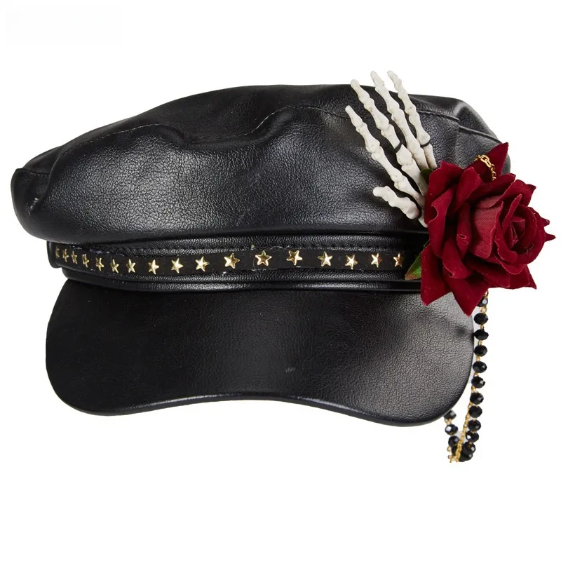 Steam Punk Goth Rose Bead Necklace Baseball Peaked Cap Skull Manual Alarm Bay H