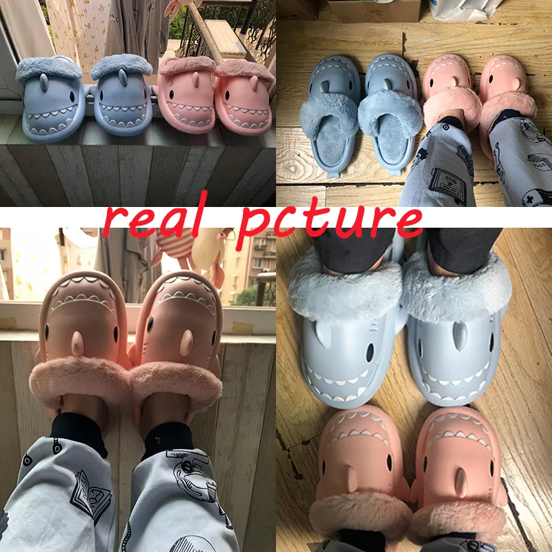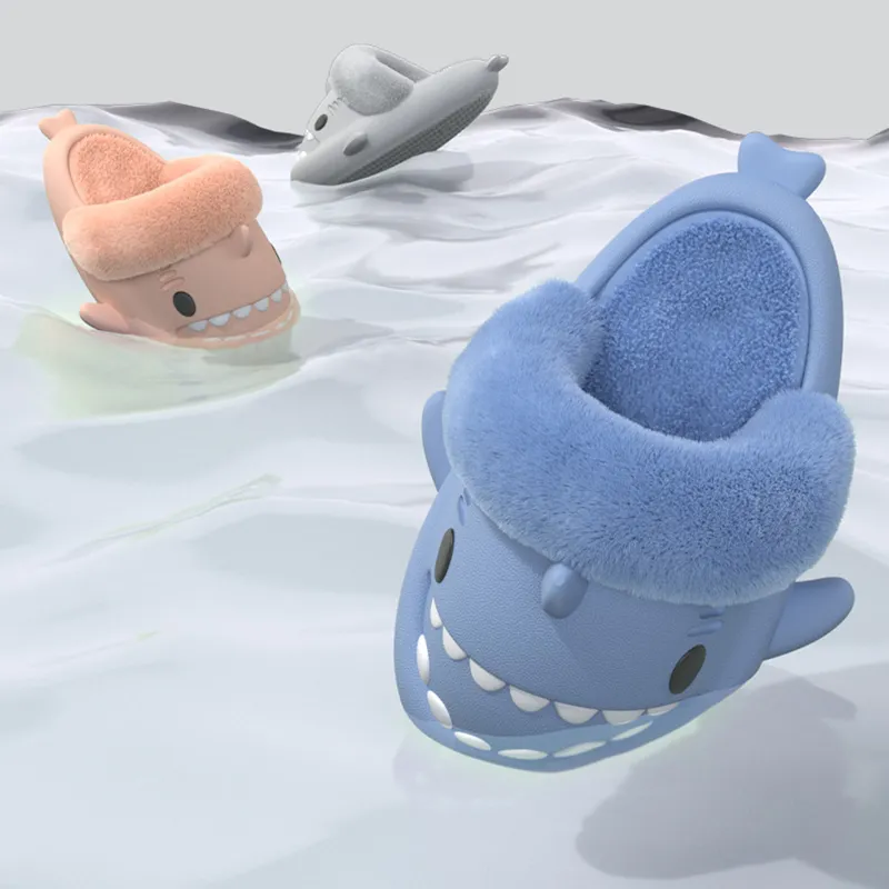 Winter Shark Slippers Detachable Warm Fuzzy Slippers Bedroom House Shoes Women