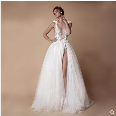 Angel Wedding Dress, Diamond Lace Collar, High Slit Bridal Tail, Open Back Ligh