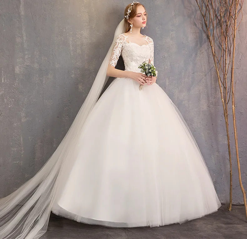 Slim Mid-sleeve Plus Size Photo Studio Wedding Dress