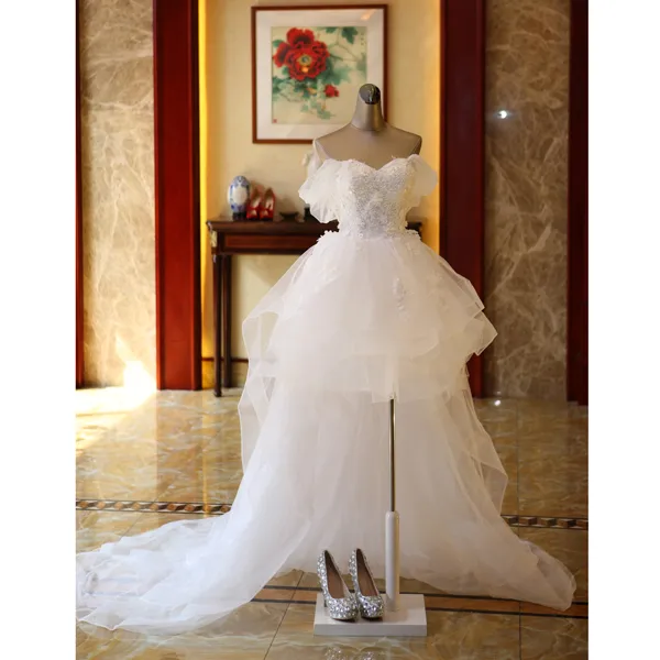 Features:The novel paper-cut handmade three-dimensional flowers, Pearl Liyao carefully carved, exquisite and romantic. The front and back of Xianxian gauze skirt are full of Xianqi, playing the "temptation" of beautiful legs! The multi wearing design of gauze shoulder strap makes you love it even more! A large number of hand embroidered lace, the soft lines of flower branches and veins, the orderly embroidery of pearls, the slim three-dimensional plate making, the fashionable front short back drag skirt design of tulle layer upon layer, and the beautiful legs! The light spirit will make you beautiful!