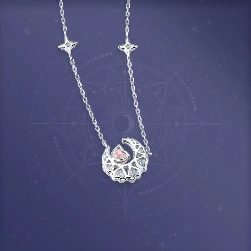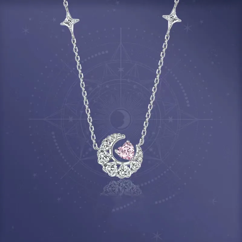 Color: Dream Heart Moon Necklace [pink diamond], Dream Heart Moon necklace [white diamond]