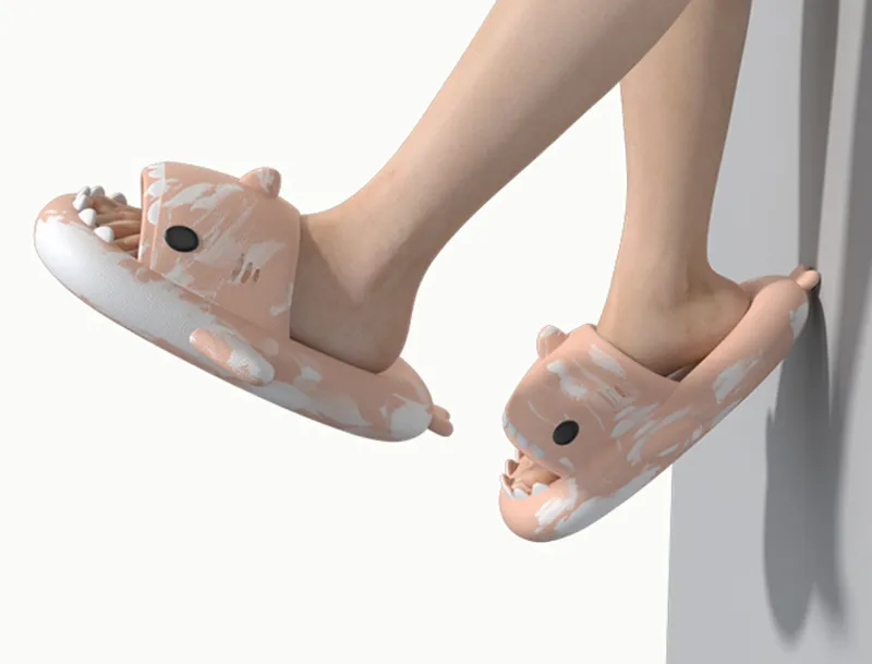 Shark Slippers Tie Dye Bathroom Slippers Couple House Shoes For Women