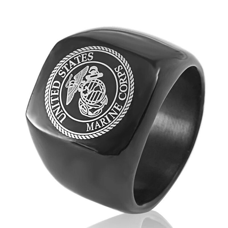 Black The United States Army Marine Corps Signet Ring For Men In Stainless Stee