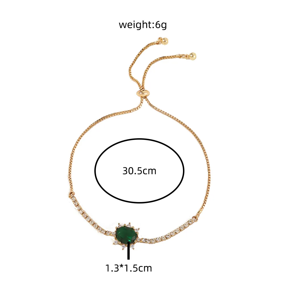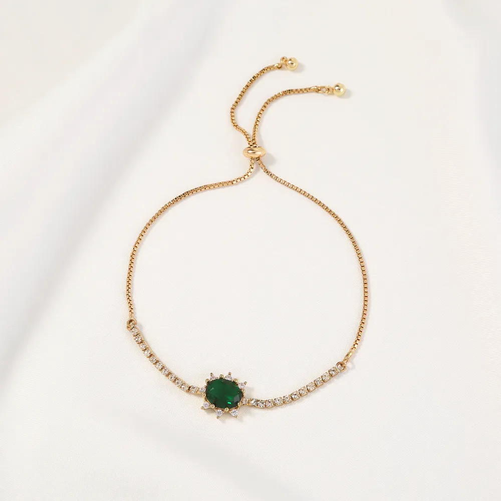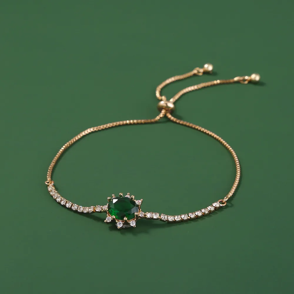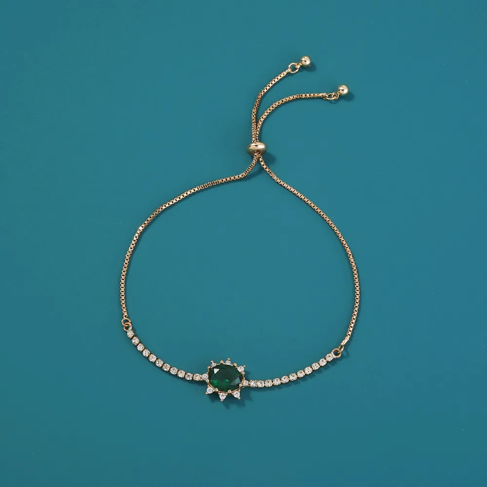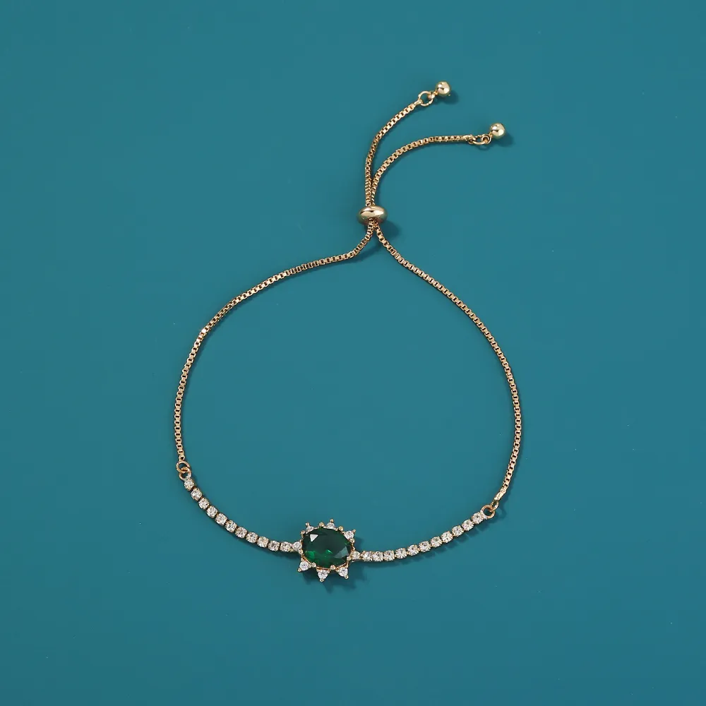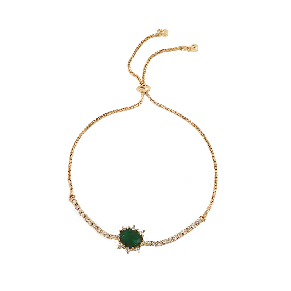 Brass Gold Plated Micropaved Zirconia Adjustable Pull Bracelet
