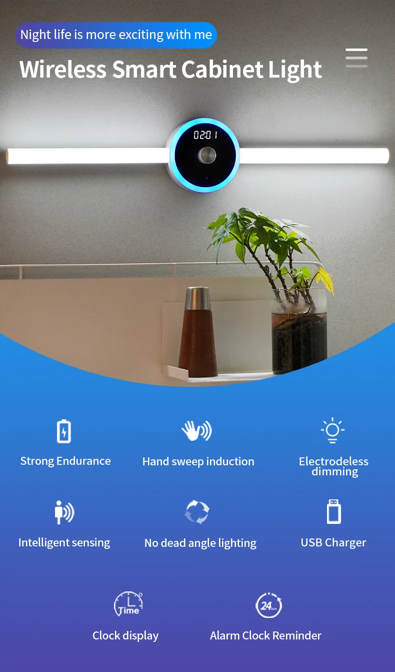 Smart Cabinet Light Clock Timing Sensor Light Removable LED Wardrobe Light Manu