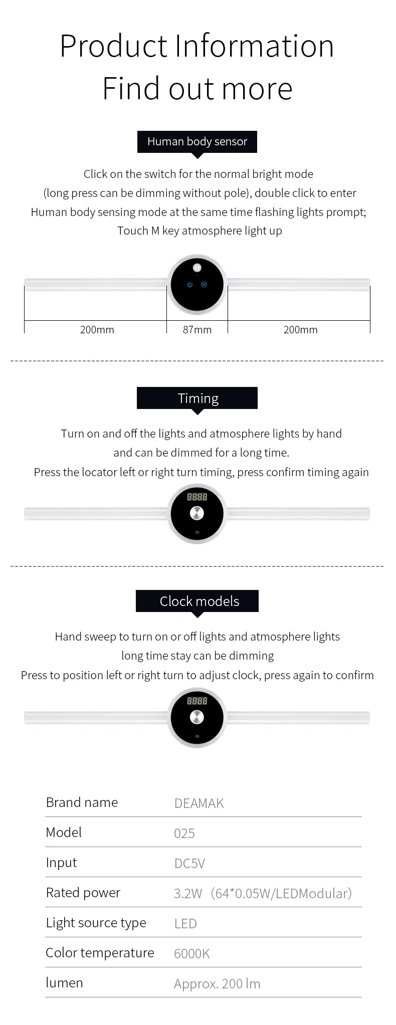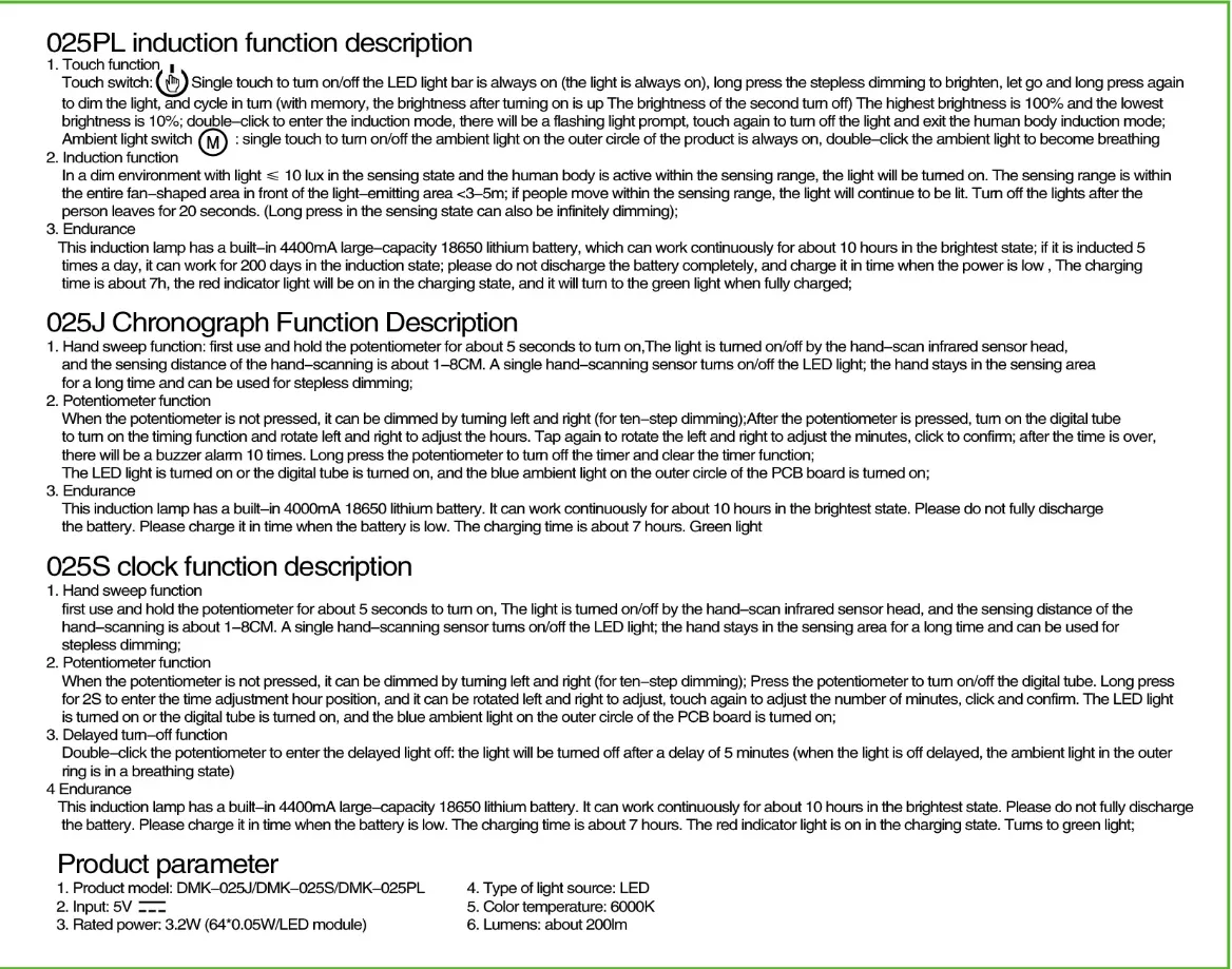 Specification: human body sensing model/hand scanning clock model/hand scanning timing model