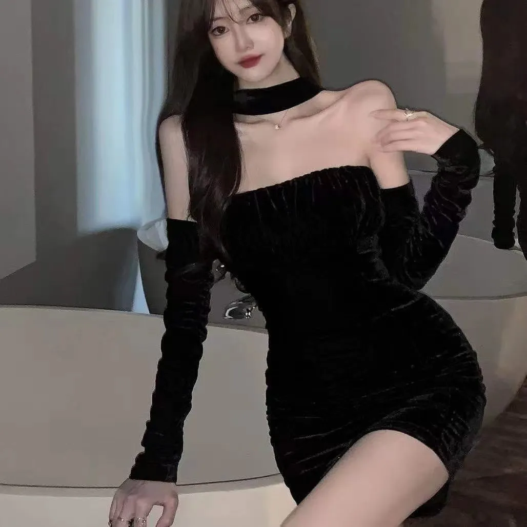 Christmas Evening Dress Light Luxury Minority Velvet Autumn And Winter Dress La