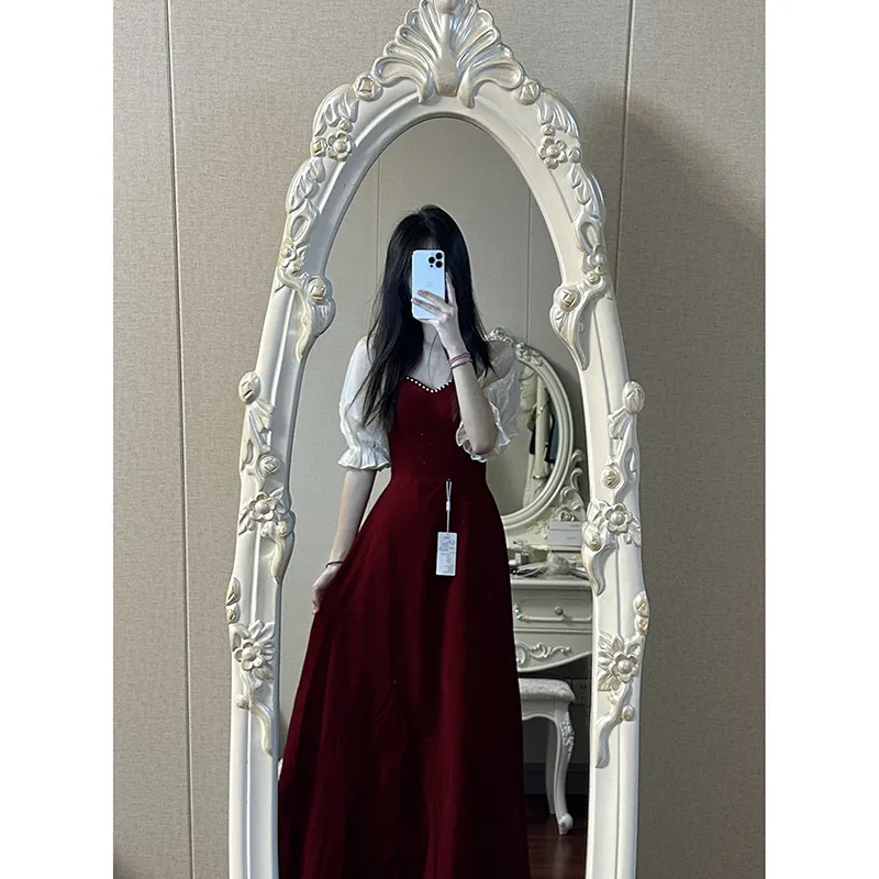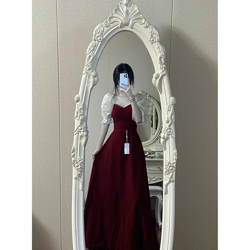 Small Plus Size Wine Red Puff Sleeve Princess High-grade Evening Dress