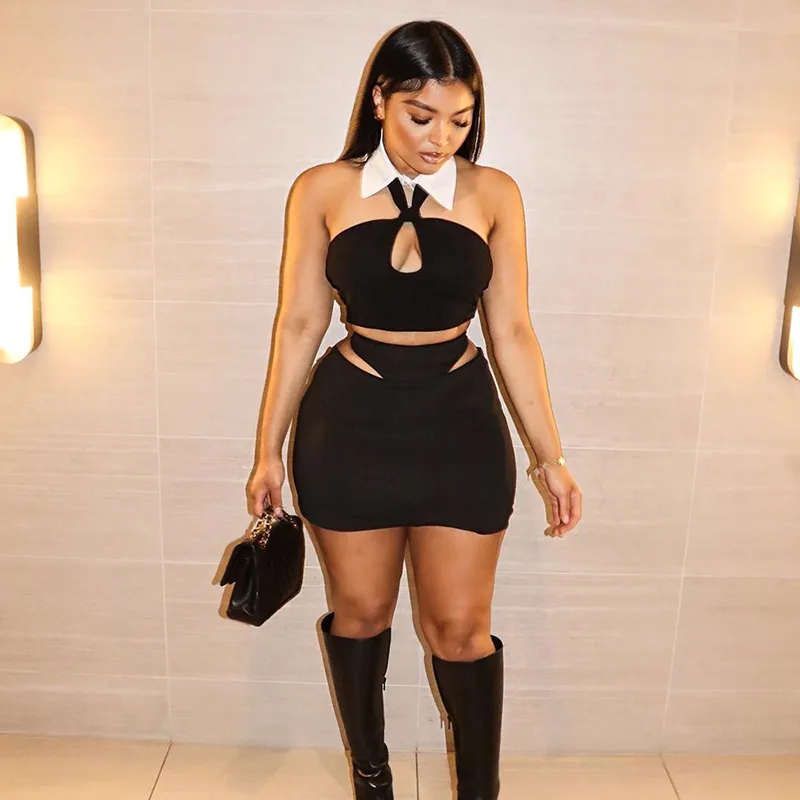 Women's Fake Lapel Twisted Short Vest Underpants Set Skirt Outfit