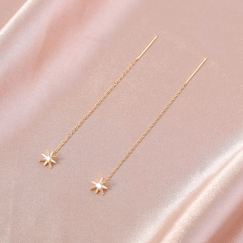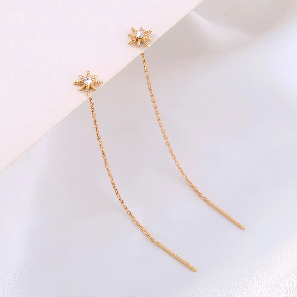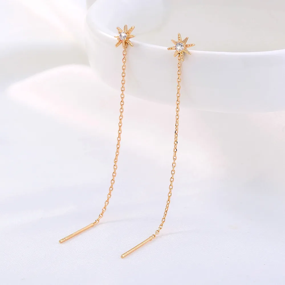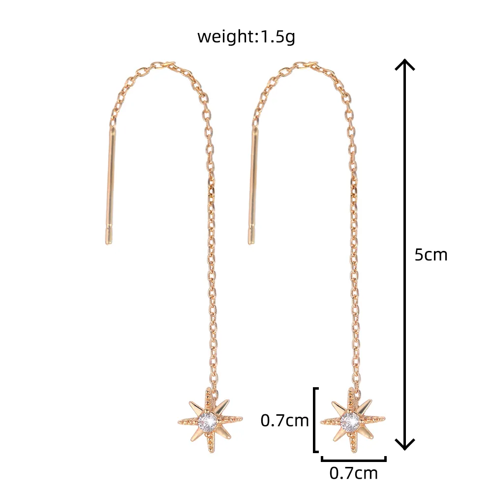 Gold Hexagram Zircon Copper Accessories Tassel Ear Wire